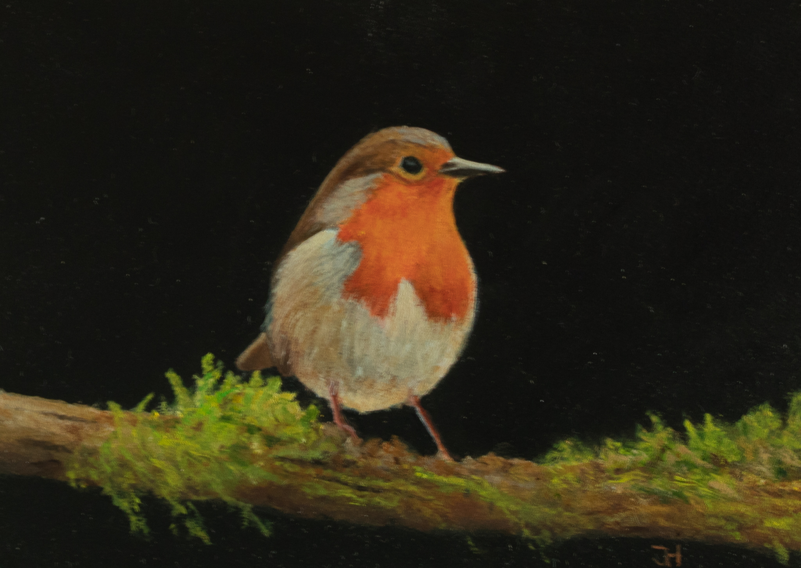 Roodborstje op begroeide tak.
