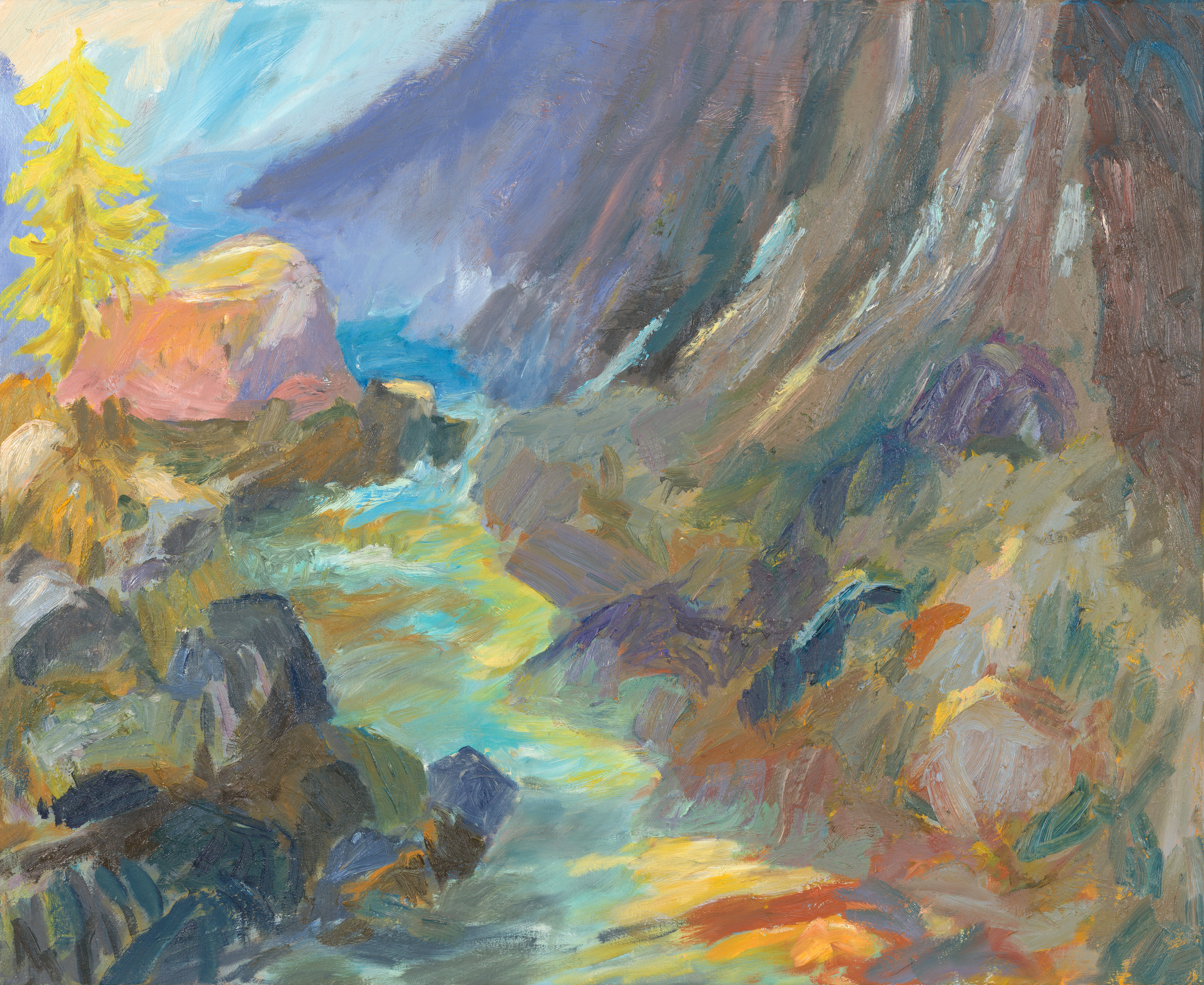 Sophie Bekkering toont in haar schilderijen en keramiek de grootse natuur. Begonnen vanuit wandelingen door de Gelderse bossen is ze inmiddels de bomen nagereisd tot aan en over de boomgrens. De ongerepte alpine ruimte waarin bomen, rotsen en water figureren.is haar speelveld.In haar schilderijen verbeeldt ze de onderliggende krachten van deze stille omgeving door middel van haar expressieve toetsen en levendige kleurcontrasten.