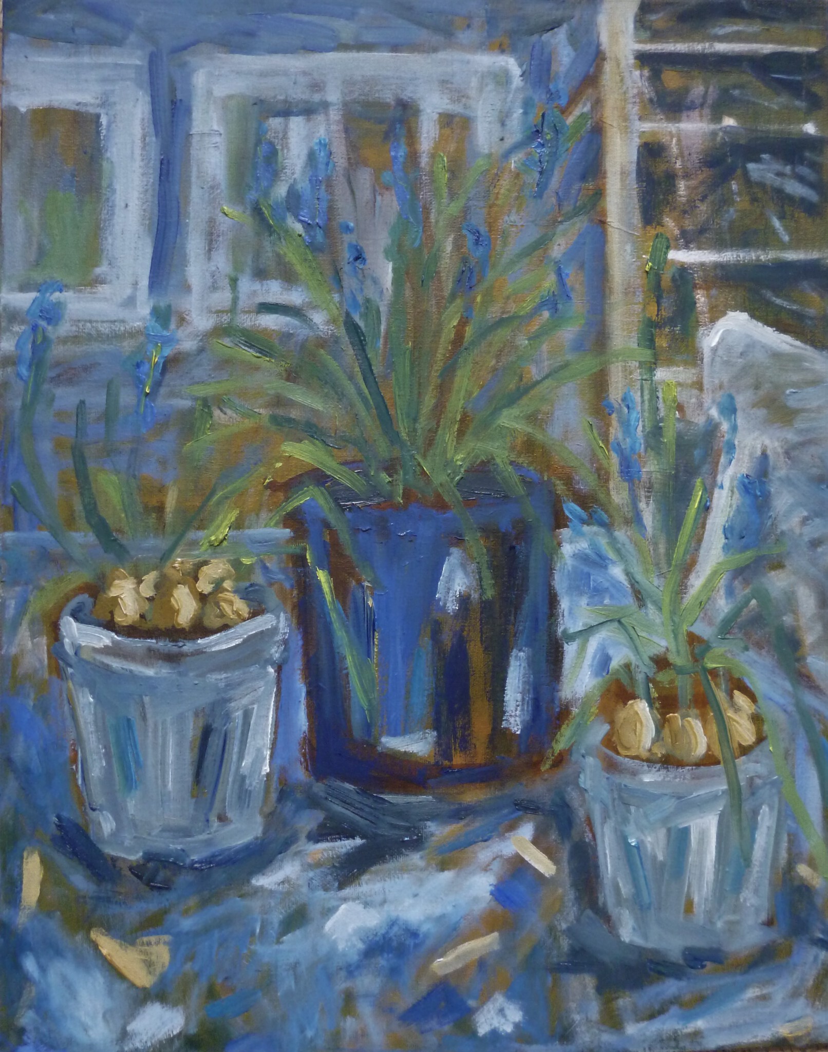 Stilleven met blauwe druifjes en planten, het nieuwe voorjaar.