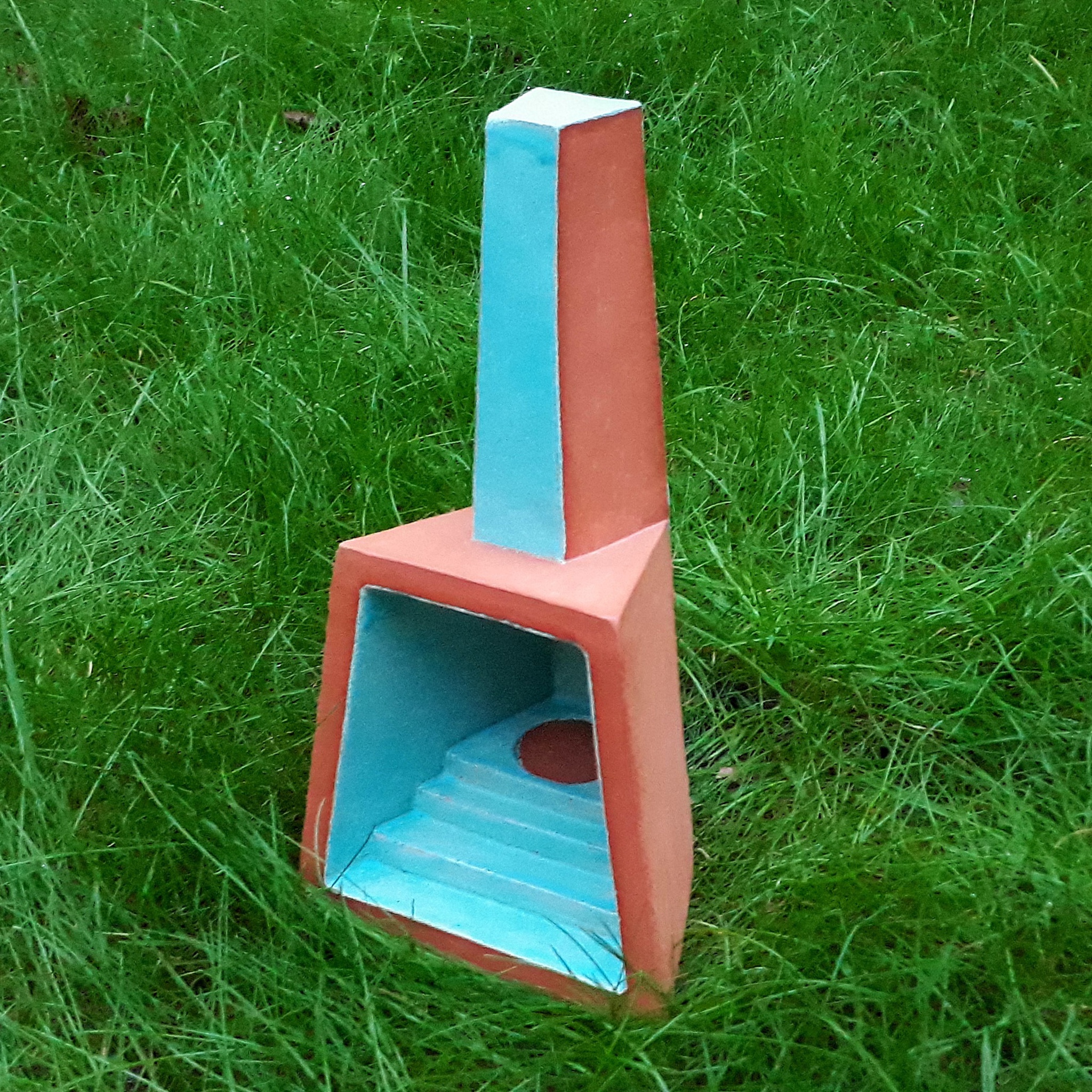 Onderdeel van een serie van een 10-tal waxine-oventjes. Allemaal in verschillende vorm, kleikleur en glazuur. Deze is in rode keli en turquoise glazuur.