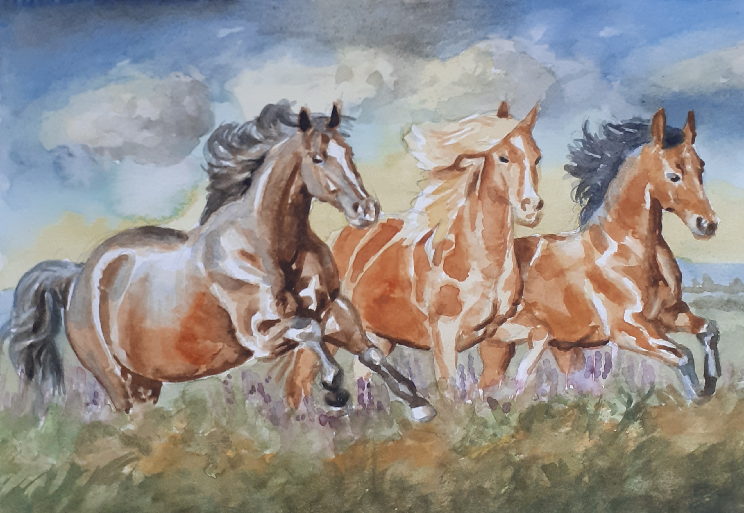 Figuratief Realistisch Paarden Dier Aquarel
