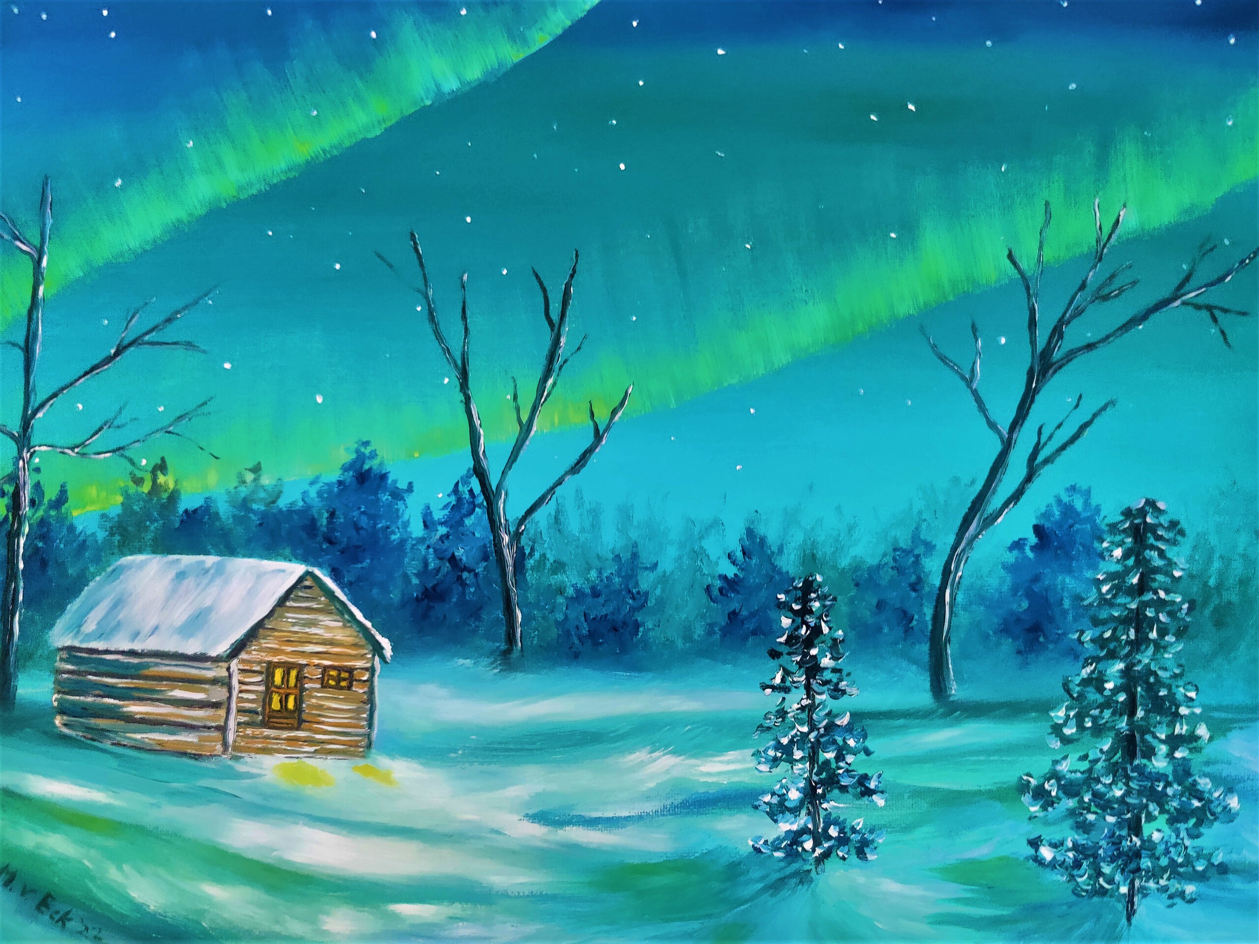Aurora Borealis, olieverf op doek, Merel van Eck 2022.