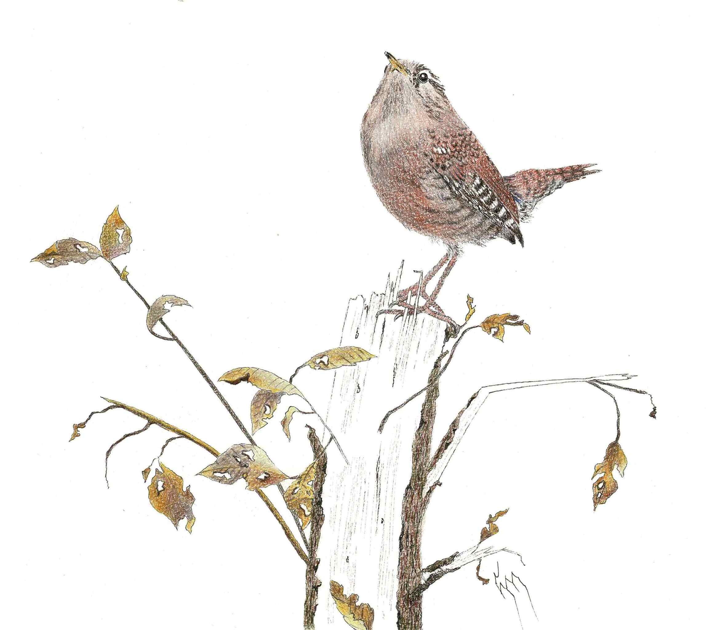 Wildlife Dieren Natuur Winter Herfst Inkt Pen Vogels Pentekening Tekenpen Winterkoninkje Winterkoning Kunstanders