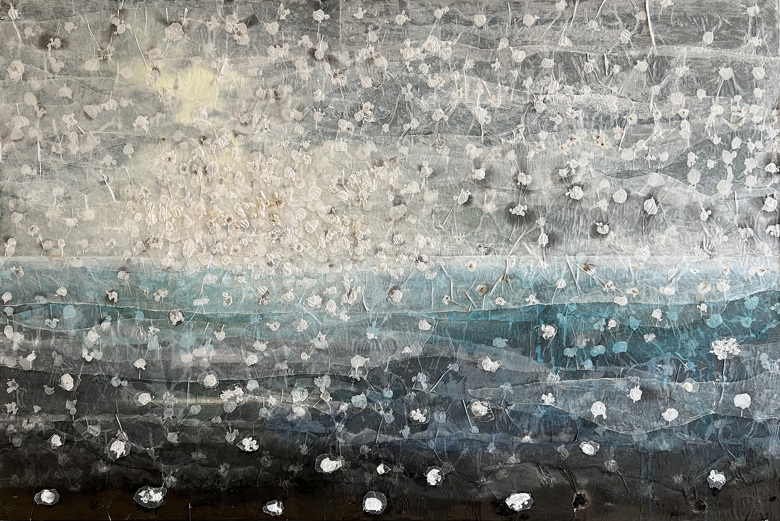 Wit Zee Zon Grijs Zwart Blauw Fotografie Papier Sneeuw Grafiek Diep Zeegezicht Beschilderd Golven Vlam Gelaagd Gescheurd Kim Opening Dibond Horizontaal Schijnen Sneeuwvlok Vur Vlokken