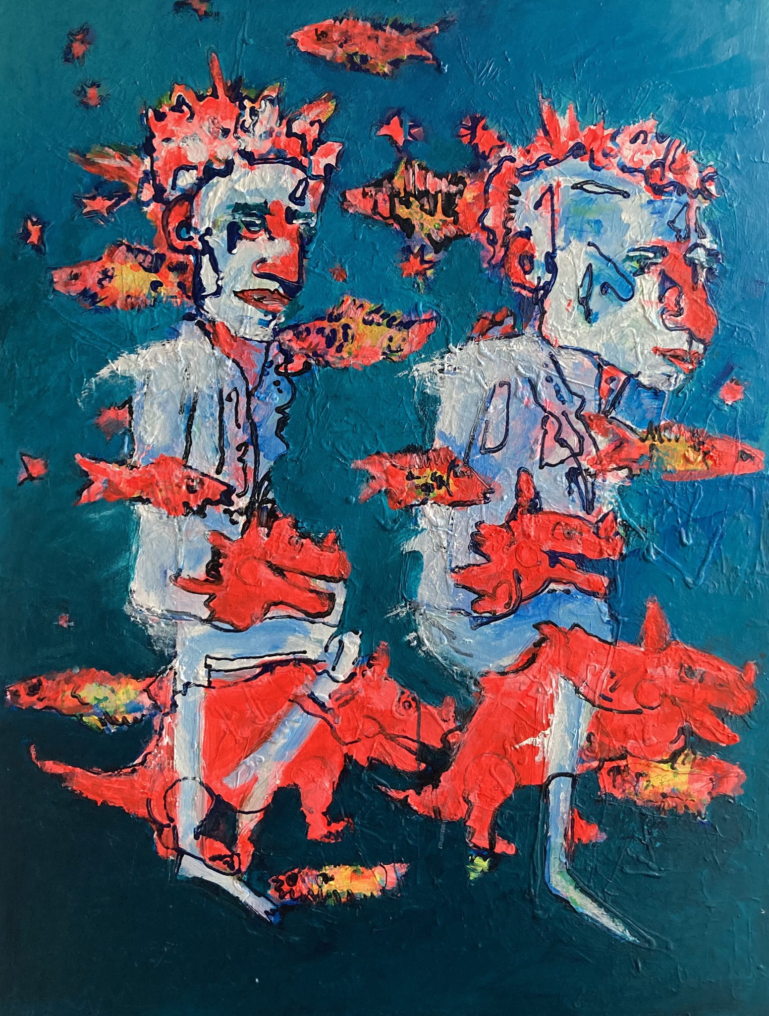 Een combinatie tussen fantasie en werkelijkheid zijn de elementen waaruit de schilderijen bestaan.
