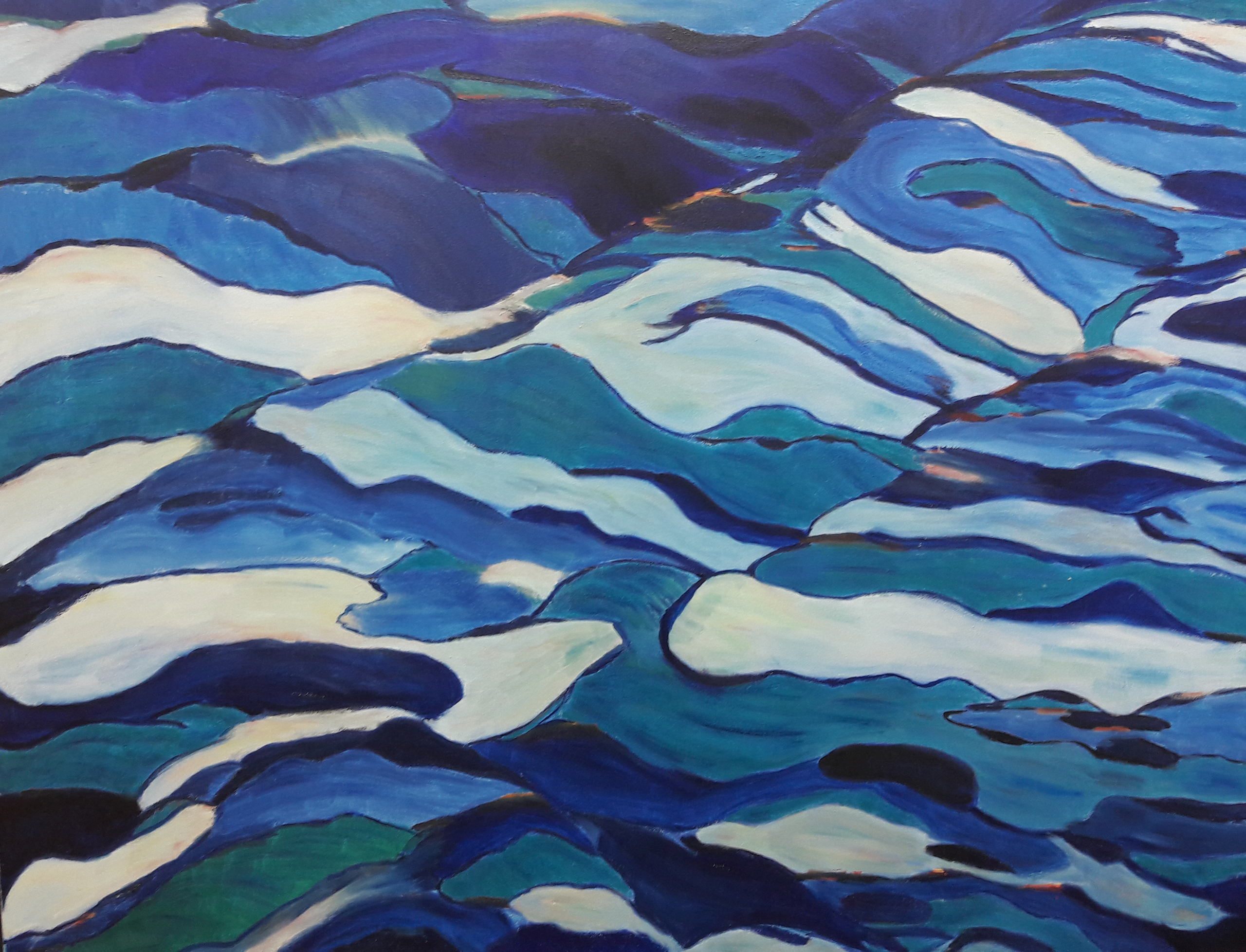 Golfslag op zee: olie op linnen