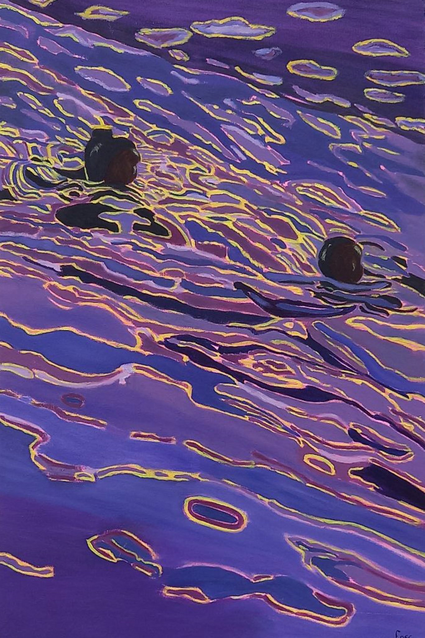 Mijn kleindochter zwemt af. De reflectie in het water is schitterend.
