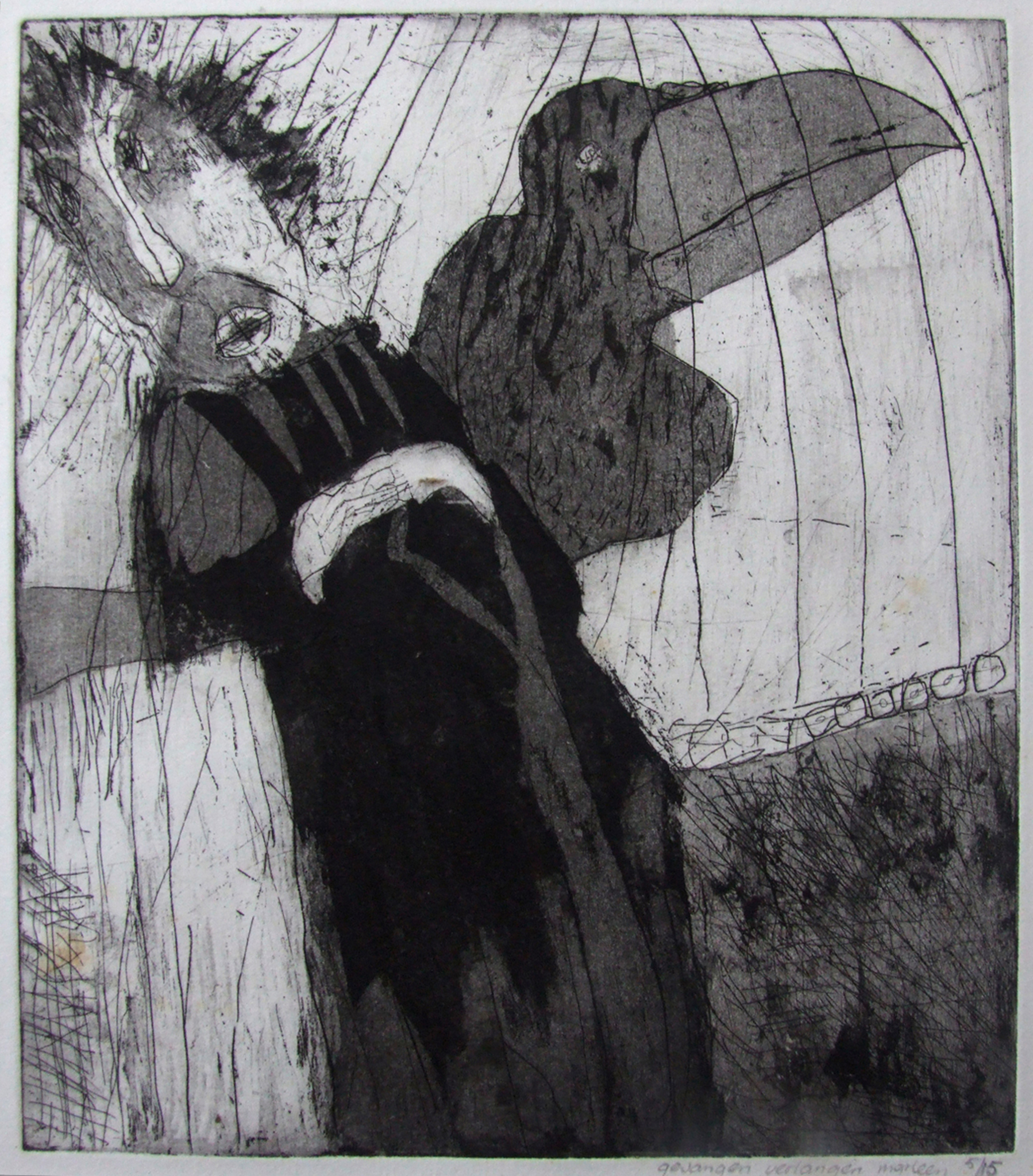 Marleen kiest vaak een thema om langere tijd aan te werken, of het thema overkomt haar. Ze studeerde in '83 af aan de ABK Minerva grafiek.. .