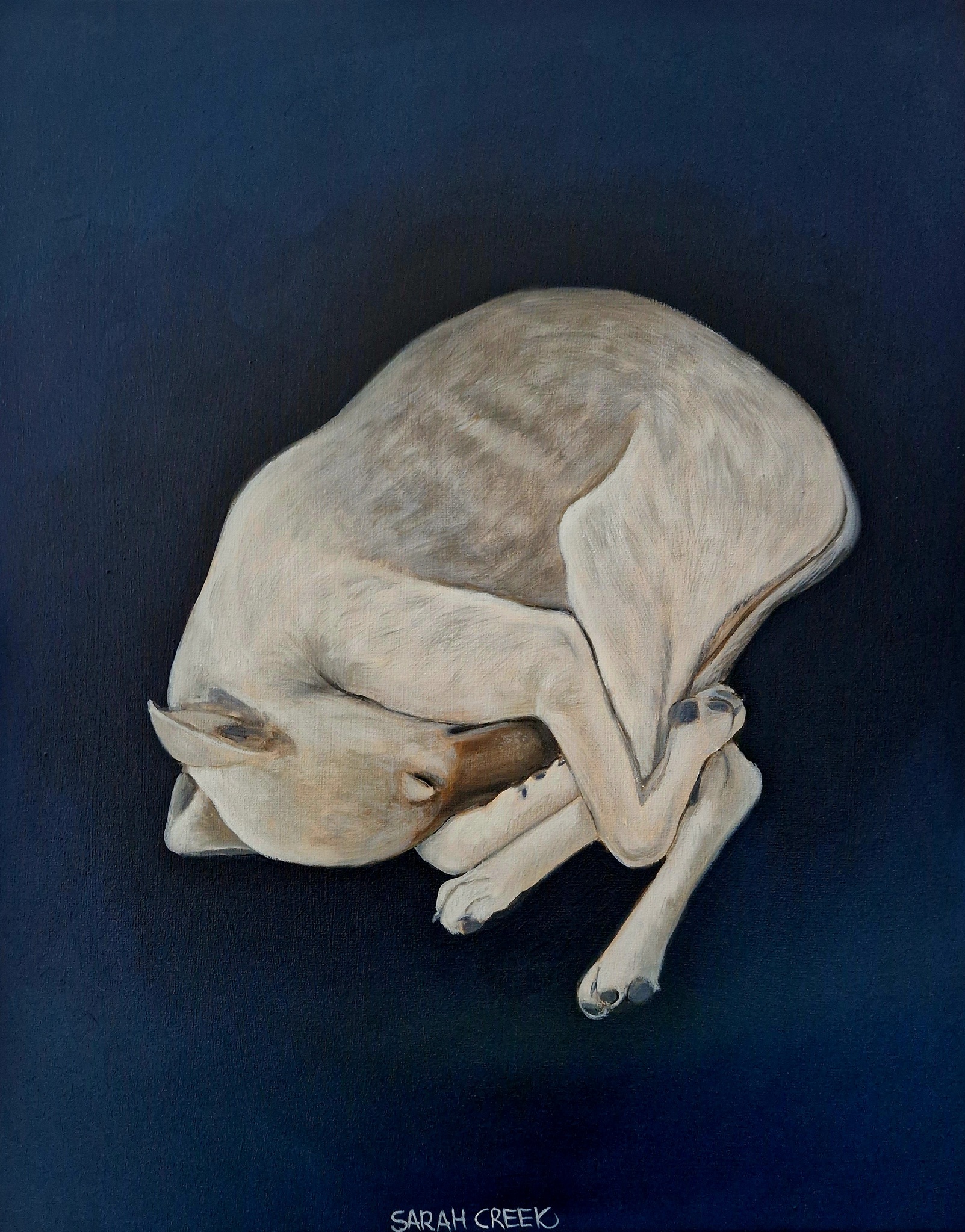 Sarah Creek schildert met acryl op canvas of linnen. Onderwerpen zijn portretten en stillevens. Sarah geeft les aan 55 talentvolle cursisten in een atelier aan huis.