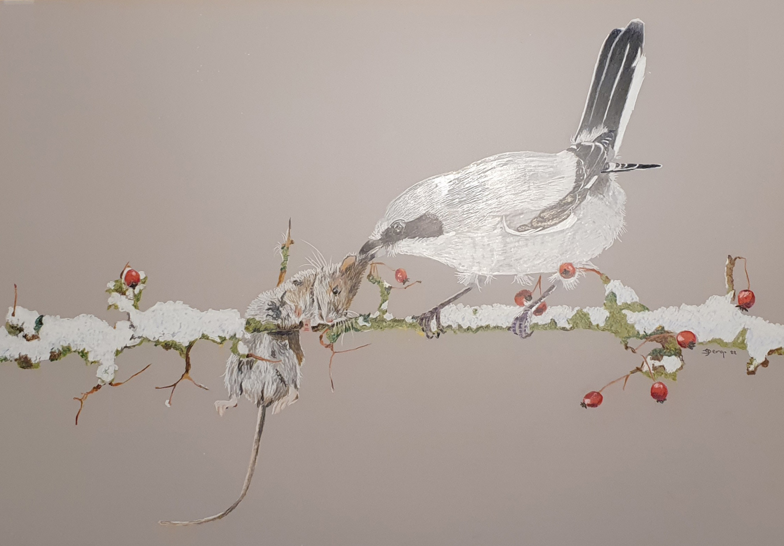 Klapekster prikt muis op takje