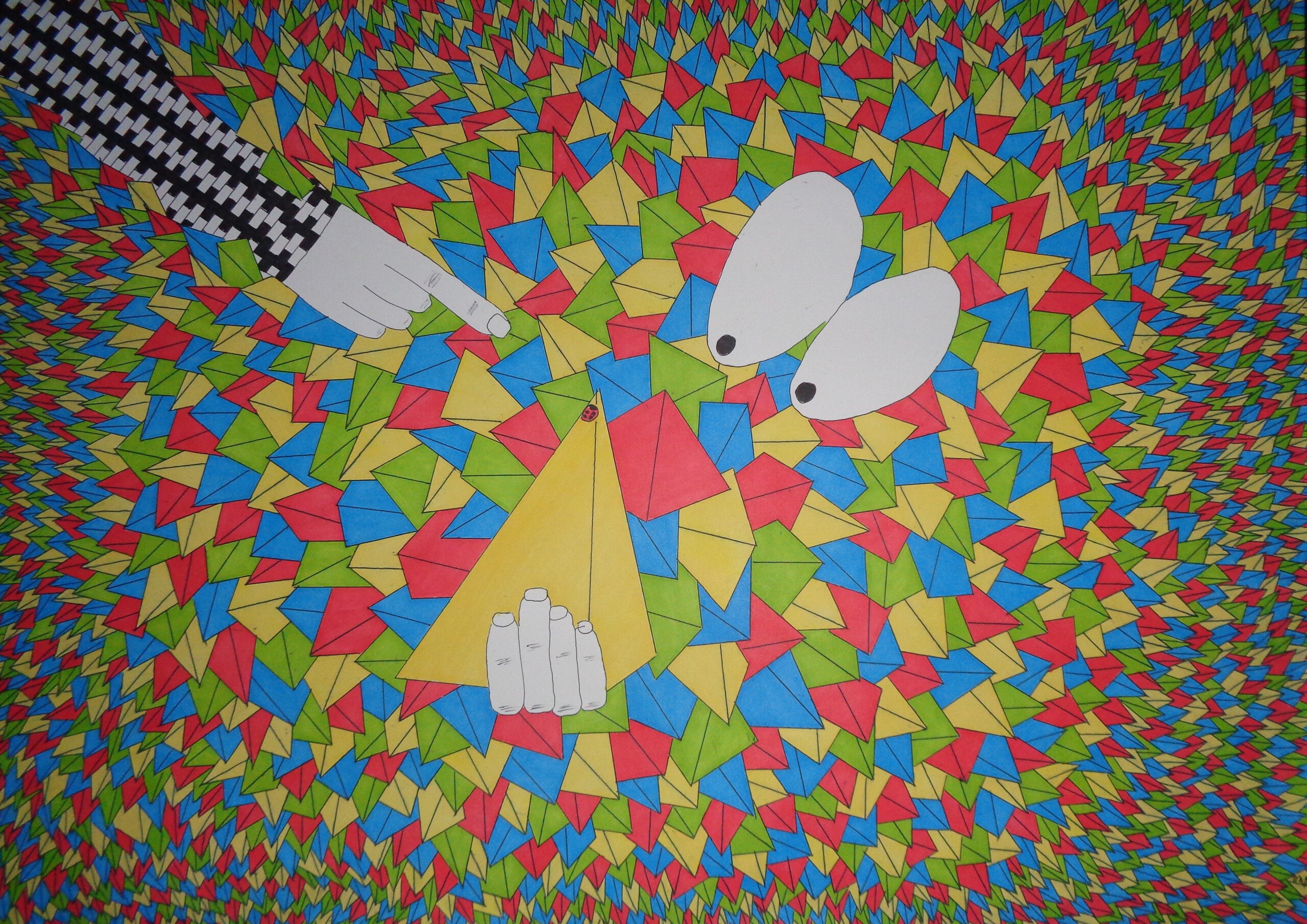 Martijn wilde een abstract kunstwerk maken met een lieveheersbeestje , het is voor jou misschien effe zoeken :-)