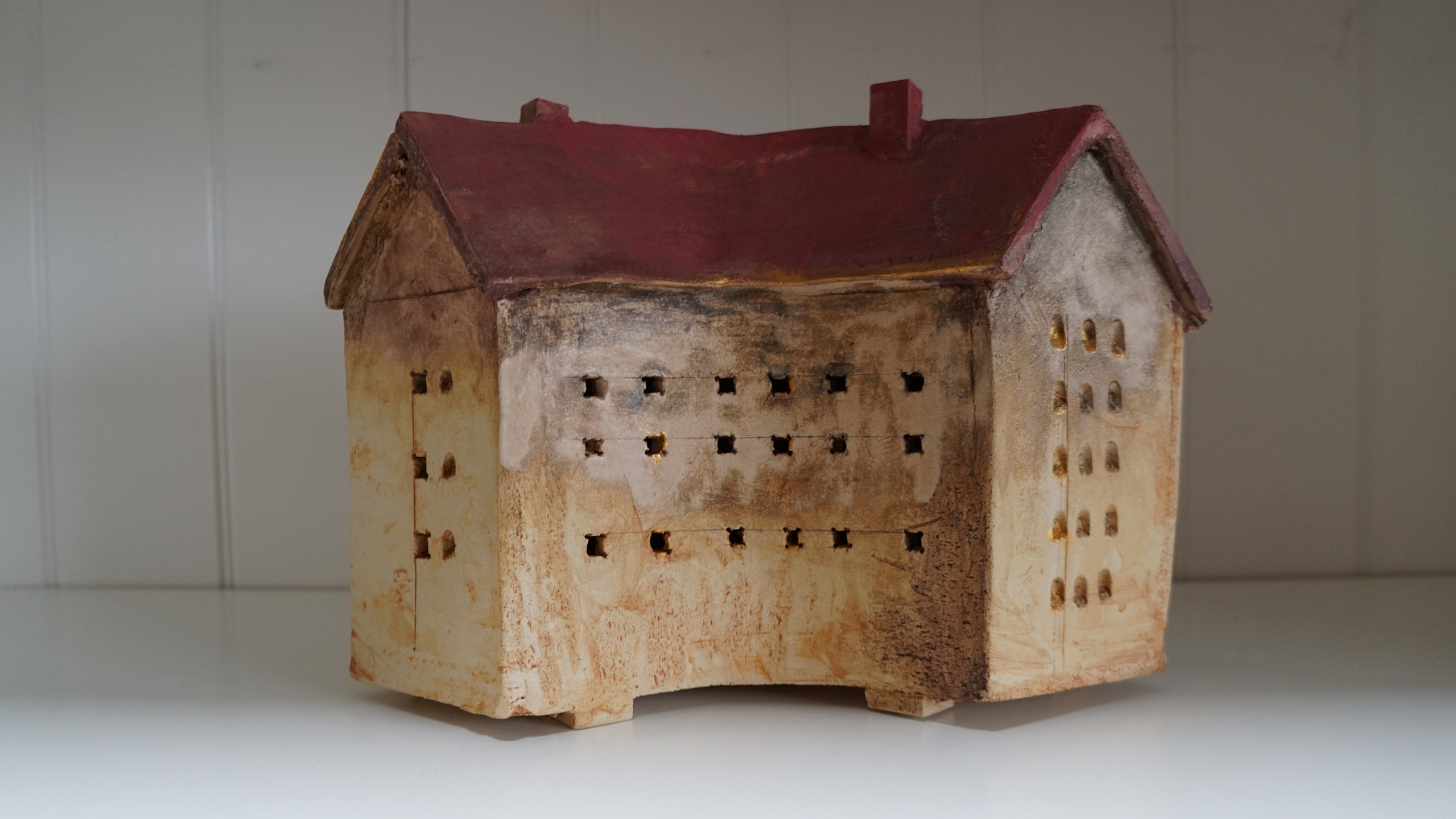 Hoek Huis Oxyde Slib Handgevormd Klei Steen Art Keramiek