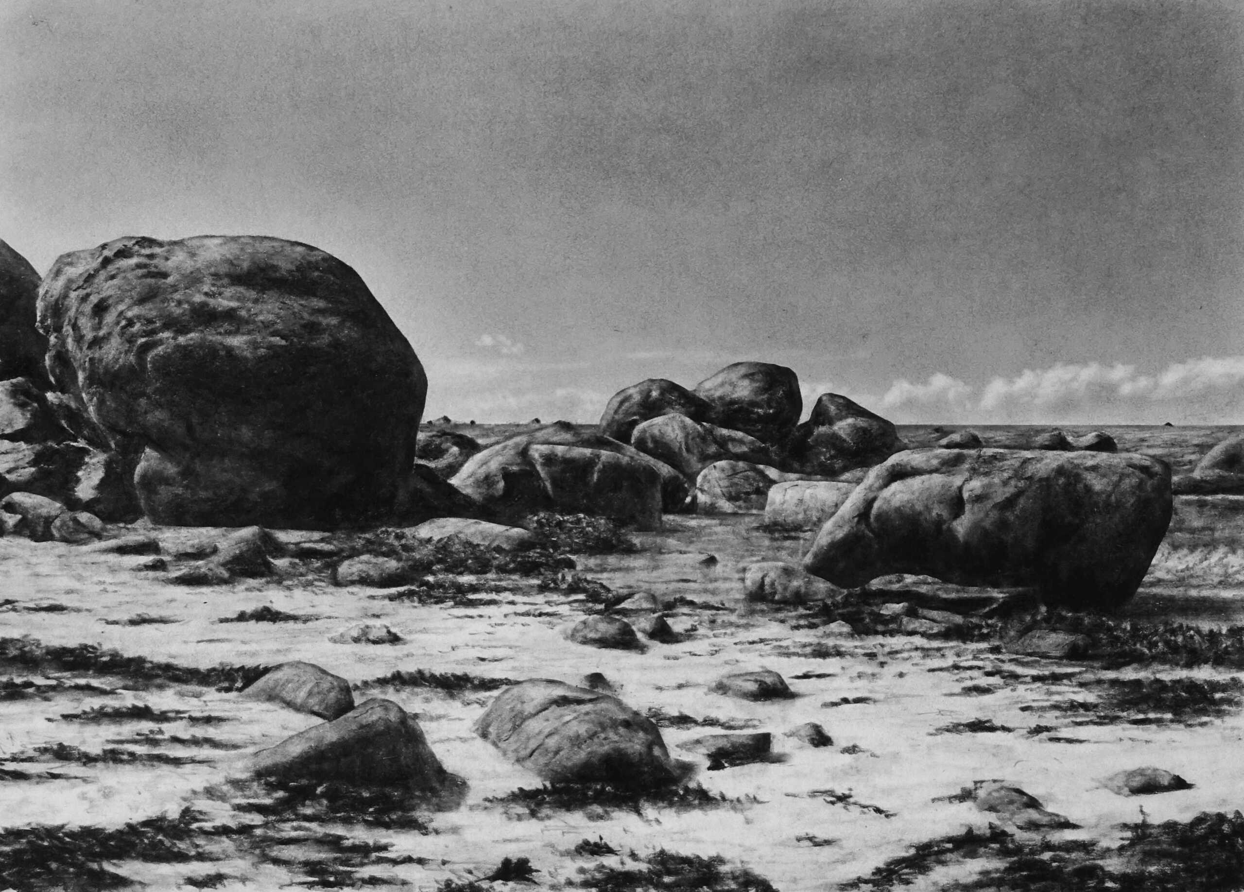 Zee Strand Tekening Houtskool Bretagne Kerlouan