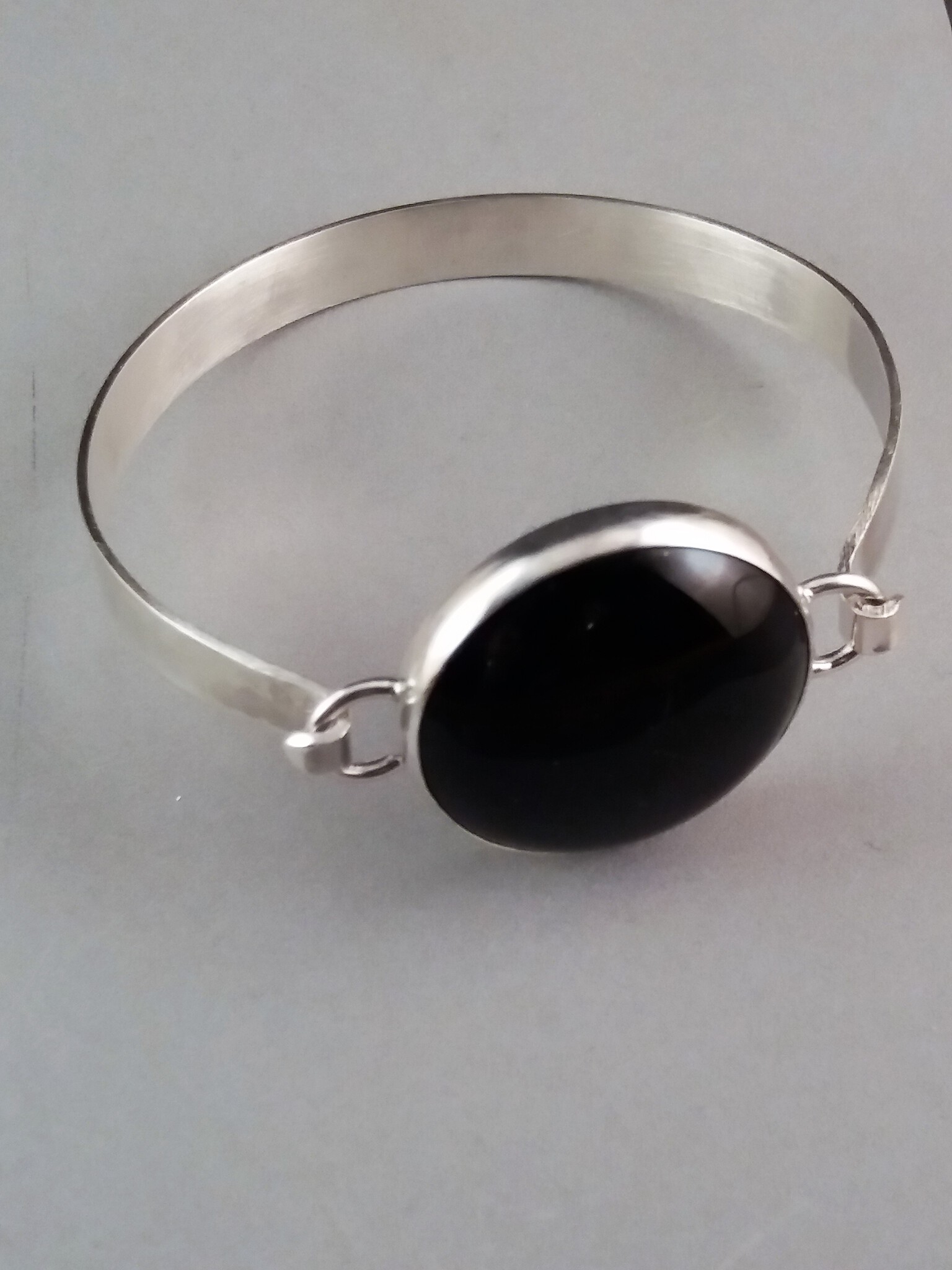 zilveren armband met een grote ronde onyx steen