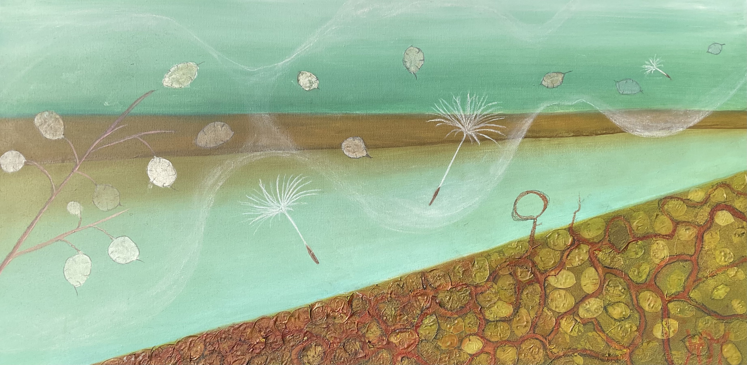 In de schilderijen van Heleen Makkinga is haar fascinatie te zien voor de wereld van de microscoop en de telescoop.Deze geheimzinnige en verborgen wereld zoekt zij op in haar werk.