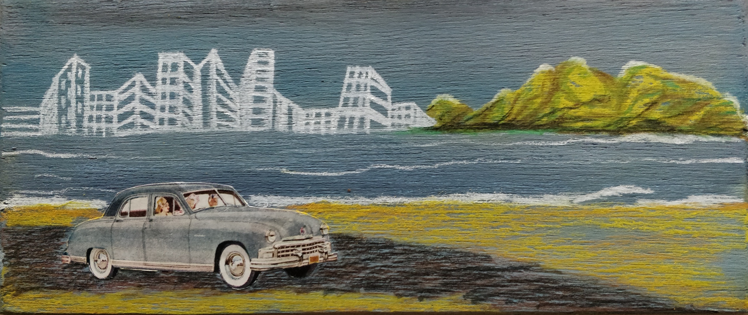 Zee Acryl Water Bergen Collage Auto Stad Rotsen Kleurpotlood Flats Onderweg Sixties Hoogbouw Oldsmobile Appartementen Zestigerjaren