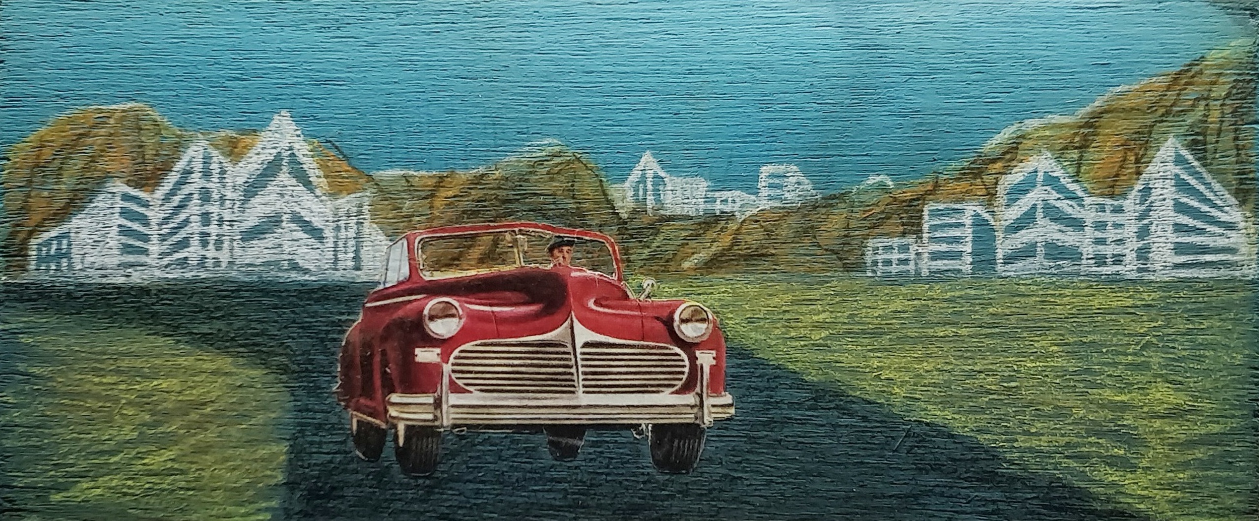 Zee Acryl Water Bergen Snelweg Collage Auto Stad Rotsen Kleurpotlood Flats Onderweg Sixties Hoogbouw Oldsmobile Appartementen Zestigerjaren