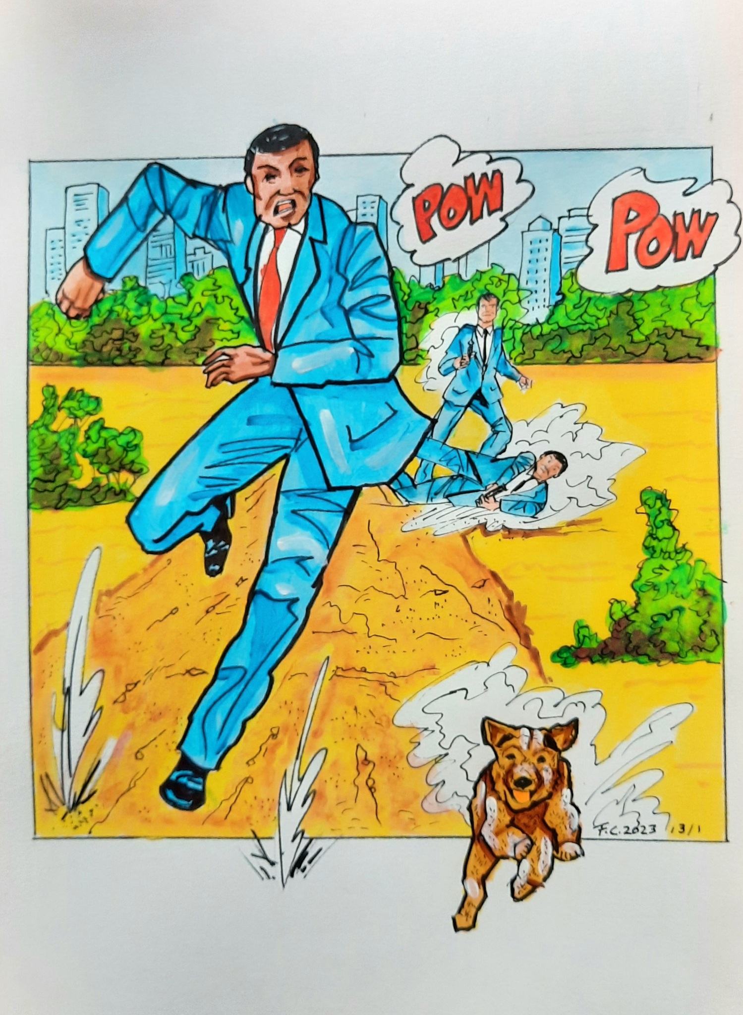 Hond Schieten Geweld Mixedmedia Popart Liquidatie 3mannen Secretservice
