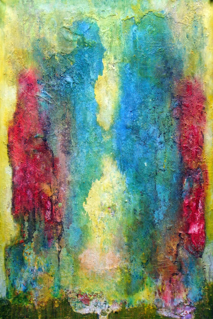 Jan Bastiaans (Mill 1955) Hij begint met een leeg doek en een leeg hoofd. In combinatie met acrylverf en mixed media hebben ze veelal een abstract, abstract figuratief of organisch karakter. Het is vrij experimenteel werk;door de verschillende materiaalsoorten en acrylverf ontstaan er spontaan vaak dynamische composities die hij verder uitwerkt. Zijn grootste drijfveer zijn de spanning en de (on) mogelijkheden van de materie tijdens het werk. Hij werkt altijd met de primaire kleuren tijdens het schilderen (of wit,zwart) en nooit met een penseel maar altijd met een spons. De schilderijen zijn rondom wit, voor zijn gevoel geeft dat veel ruimte.