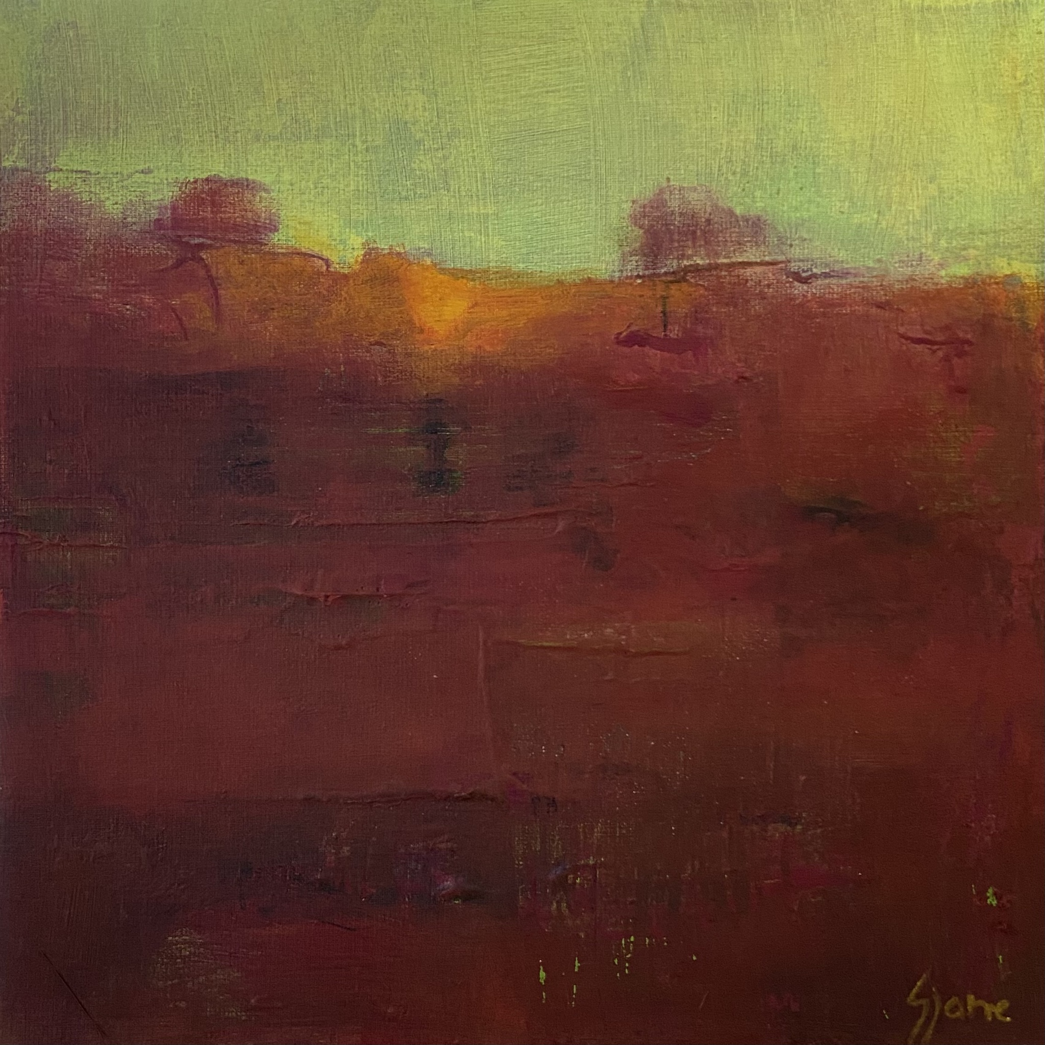 Het landschap is mijn grootste inspiratiebron. In de zomer heb ik veel buiten geschilderd. Mijn landschappen zijn kleurrijk en sterk geabstraheerd. Op het moment zijn mijn landschappen abstract.