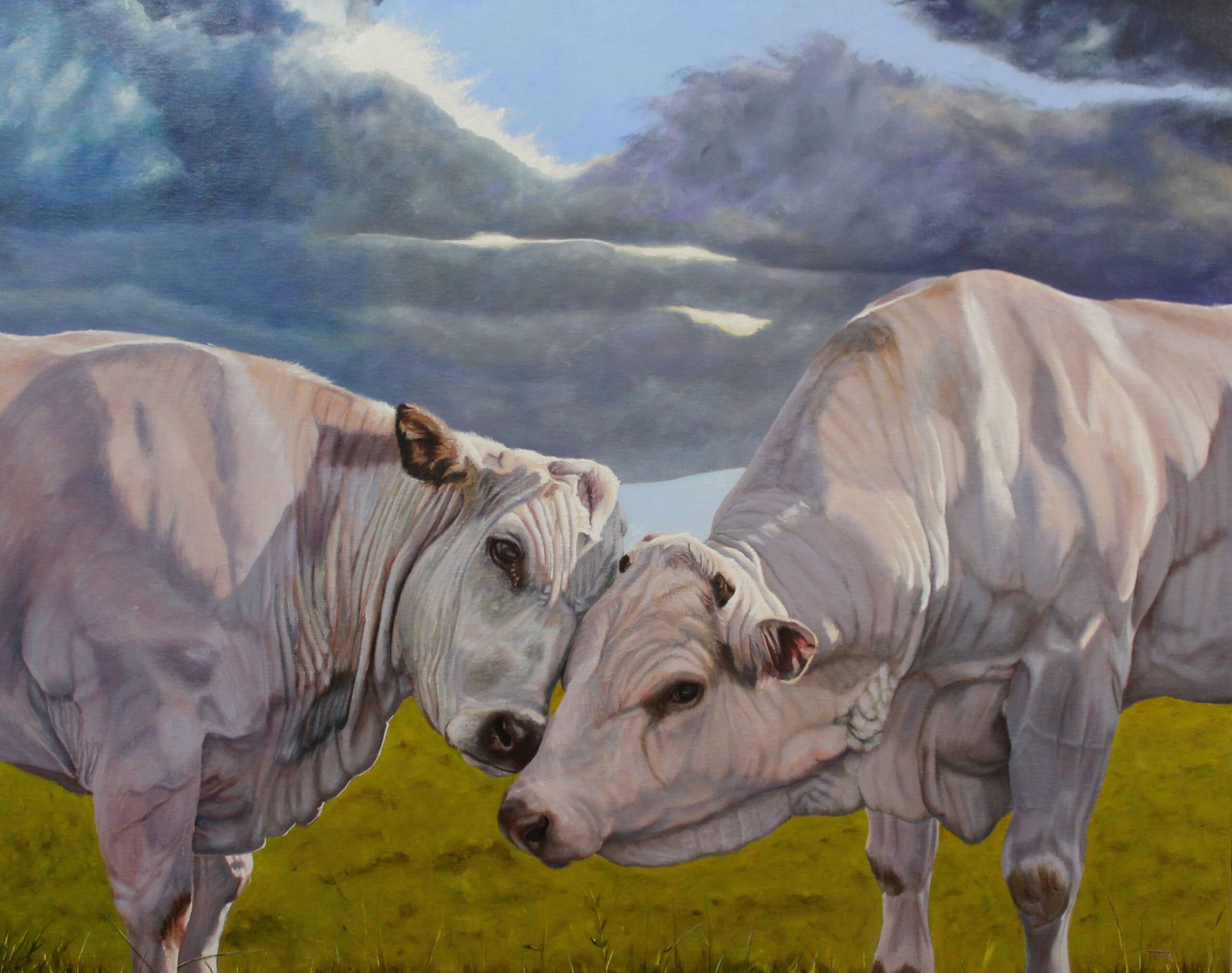 Marchigiana, een koe en een stier in een innige omstrengeling, geschilderd in opdracht (Fotograaf Michiel van der Velden)