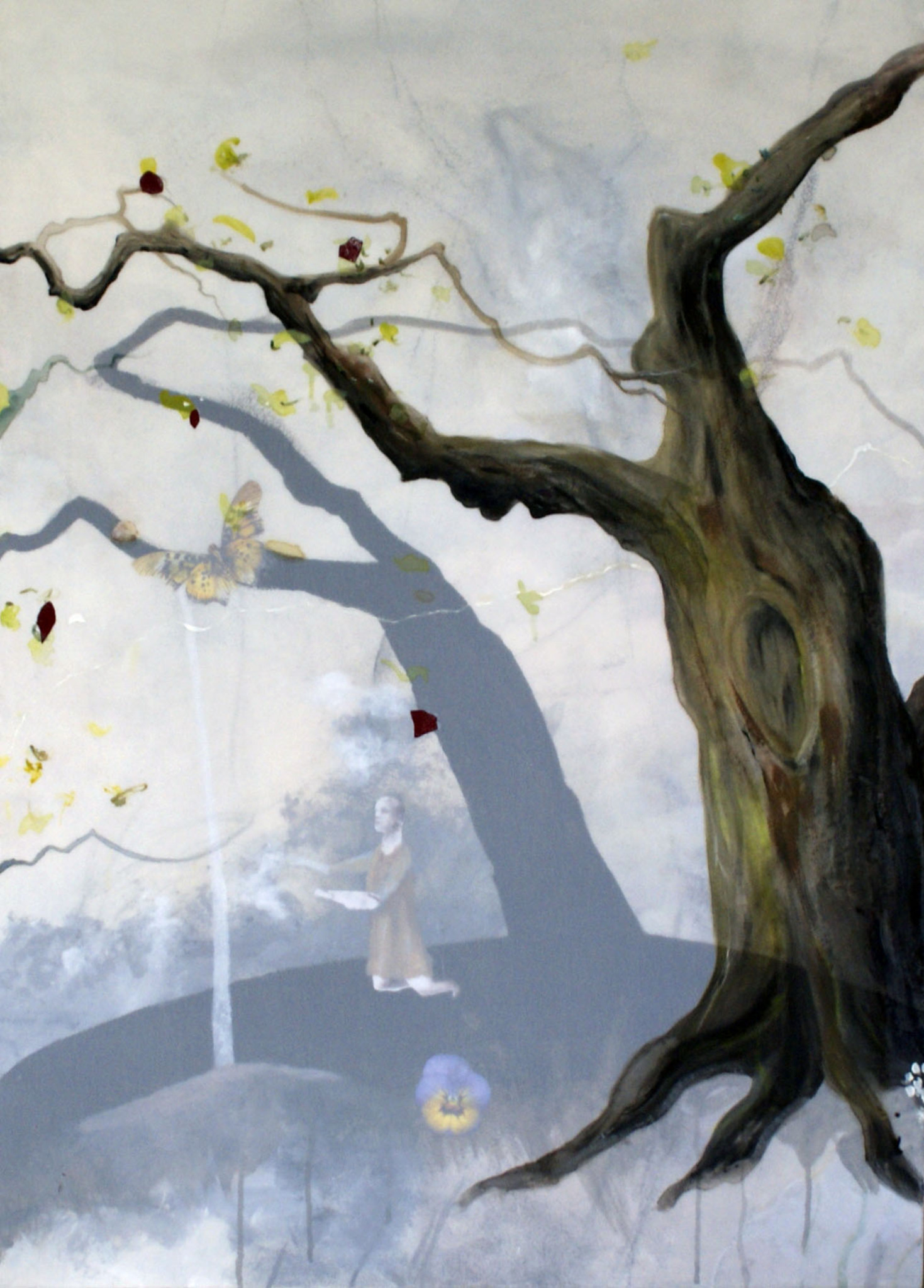 In mijn schilderijen zie je de wonderlijke wereld van de natuur met soms sprookjesachtige figuren. Naast schilderijen maak ik altaartjes en kandelaars van gerecycled en beschilderd glas.