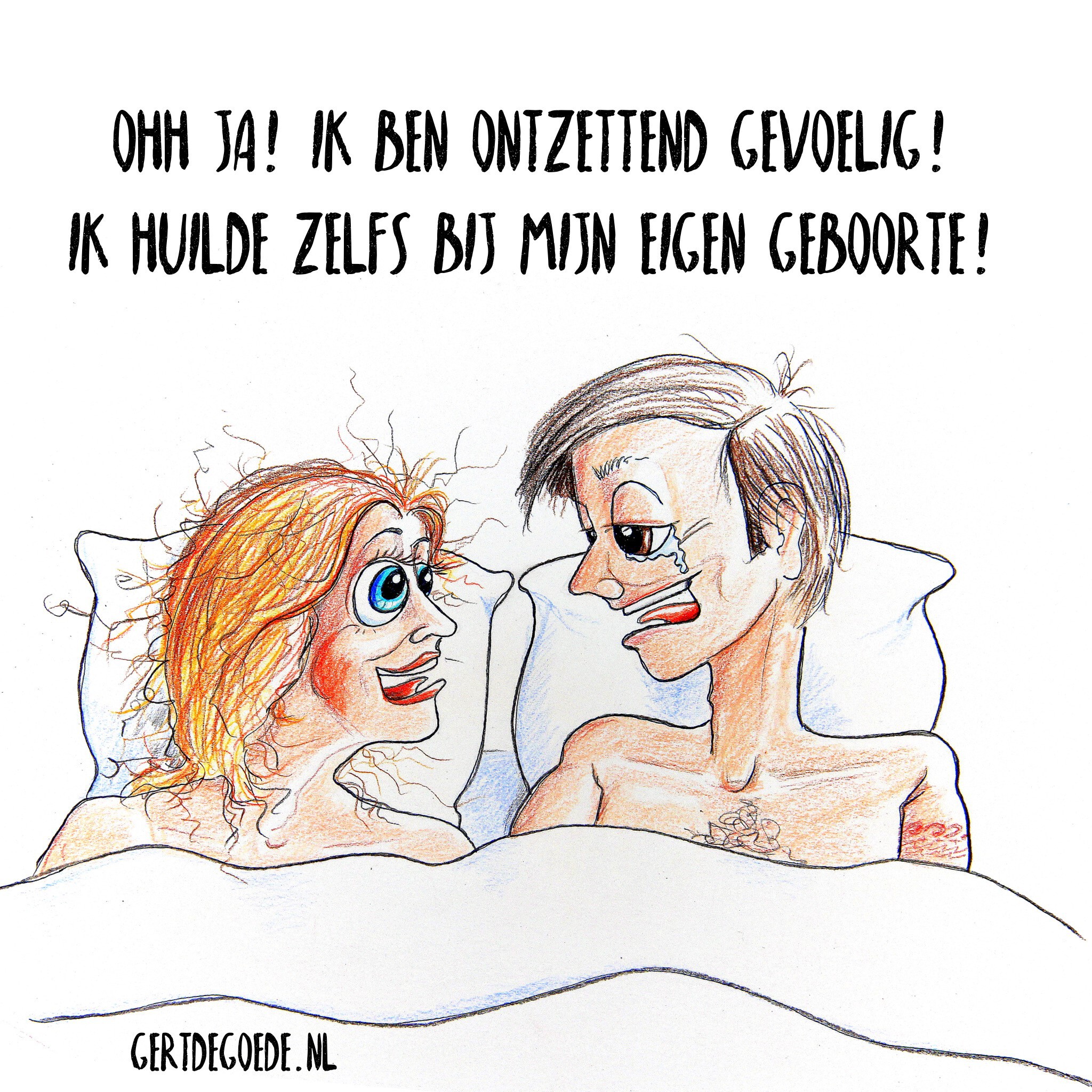 Ontzettend Gevoelig Ik Huilde Bij Mijn Geboorte Bedpraatjes Bed Seks Sex Voorspel Naspel Spel Lekker Cartoon Cartoonist Huilen Gevoel