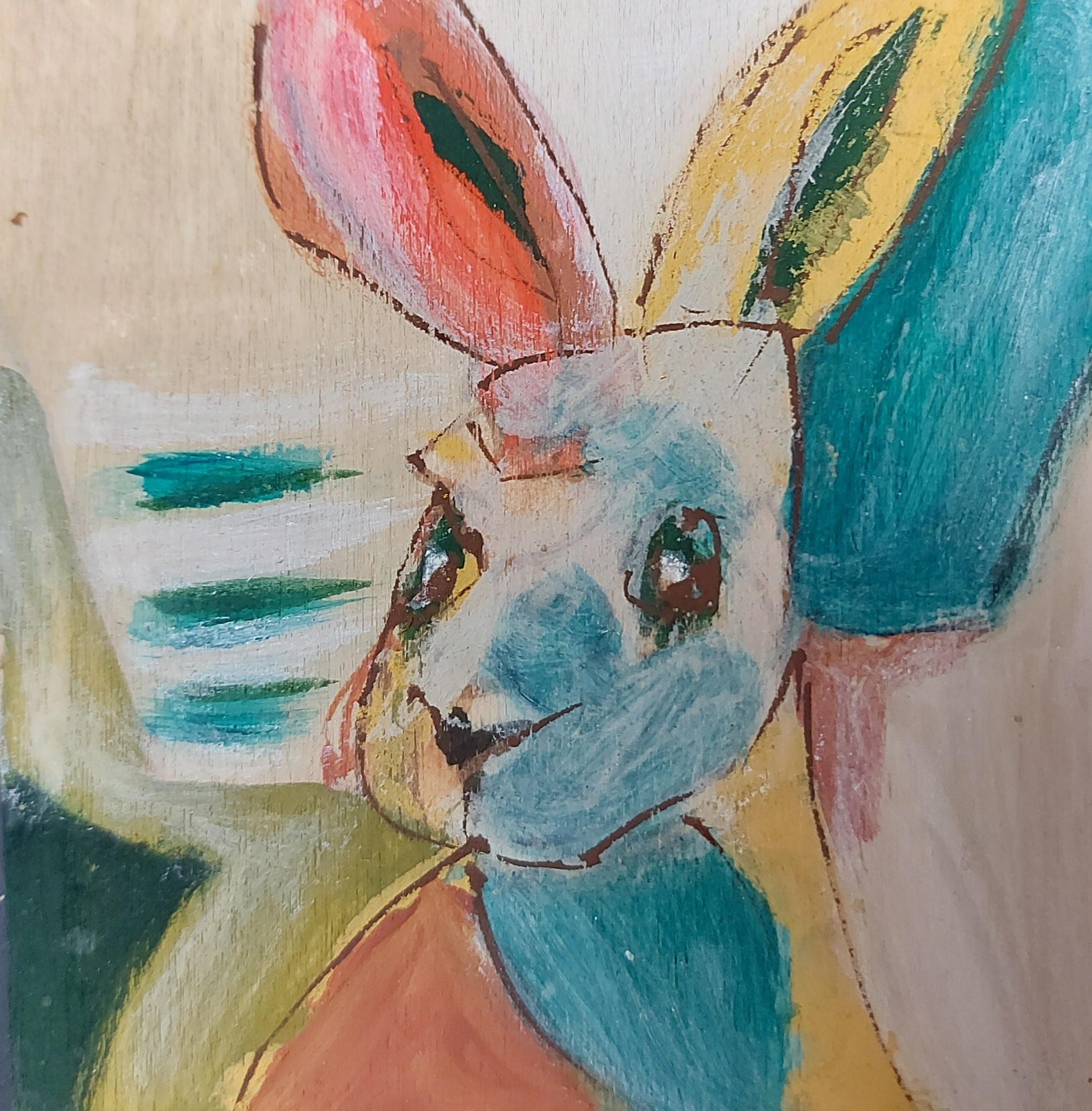 Paneeltje met konijn in tempera Grassa. Een van zes. Ook alle zes te koop voor 40 euro. Prijs is excl. verzenden