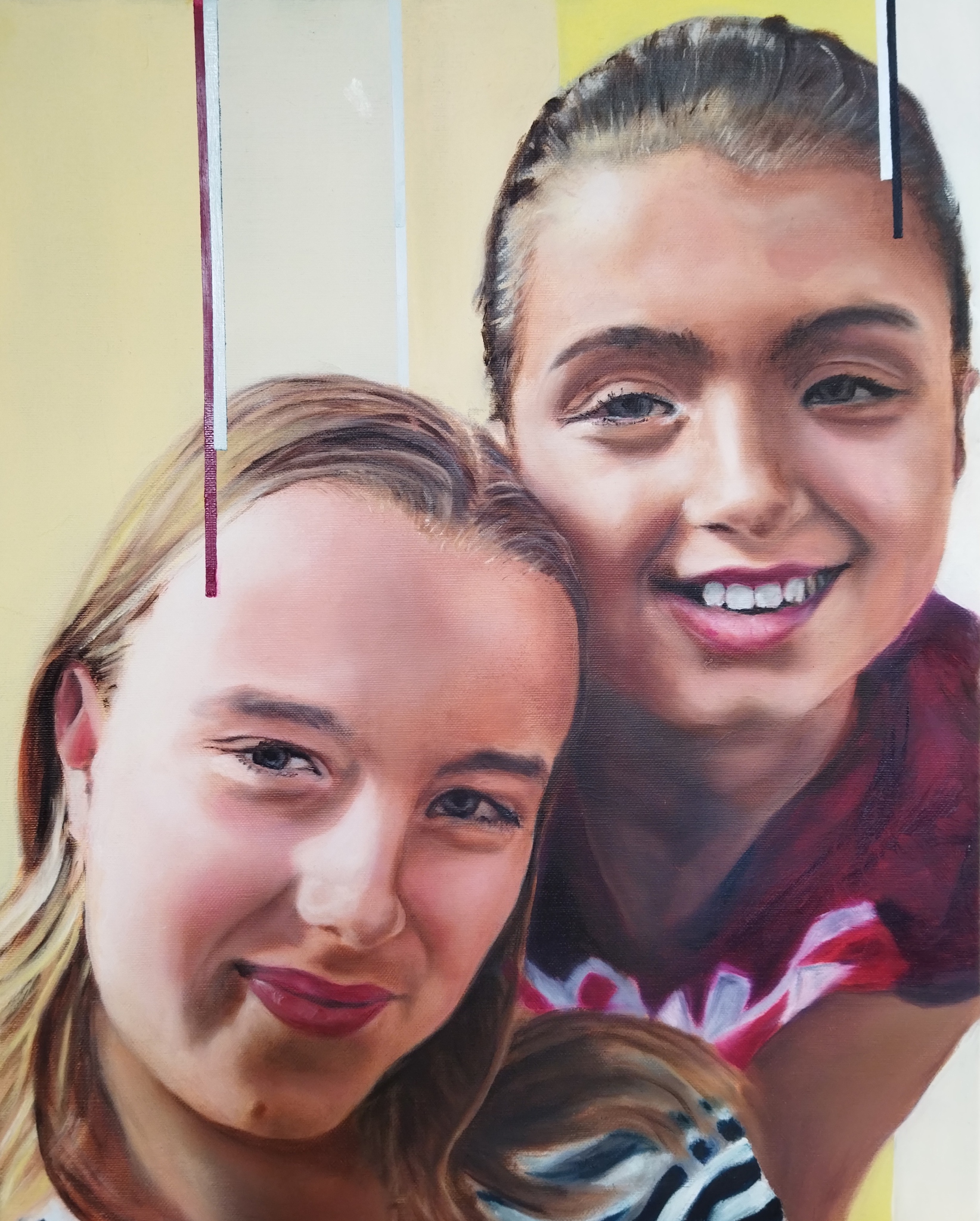 Nynke en Donna, kleinkinderen in opdracht geschilderd.
