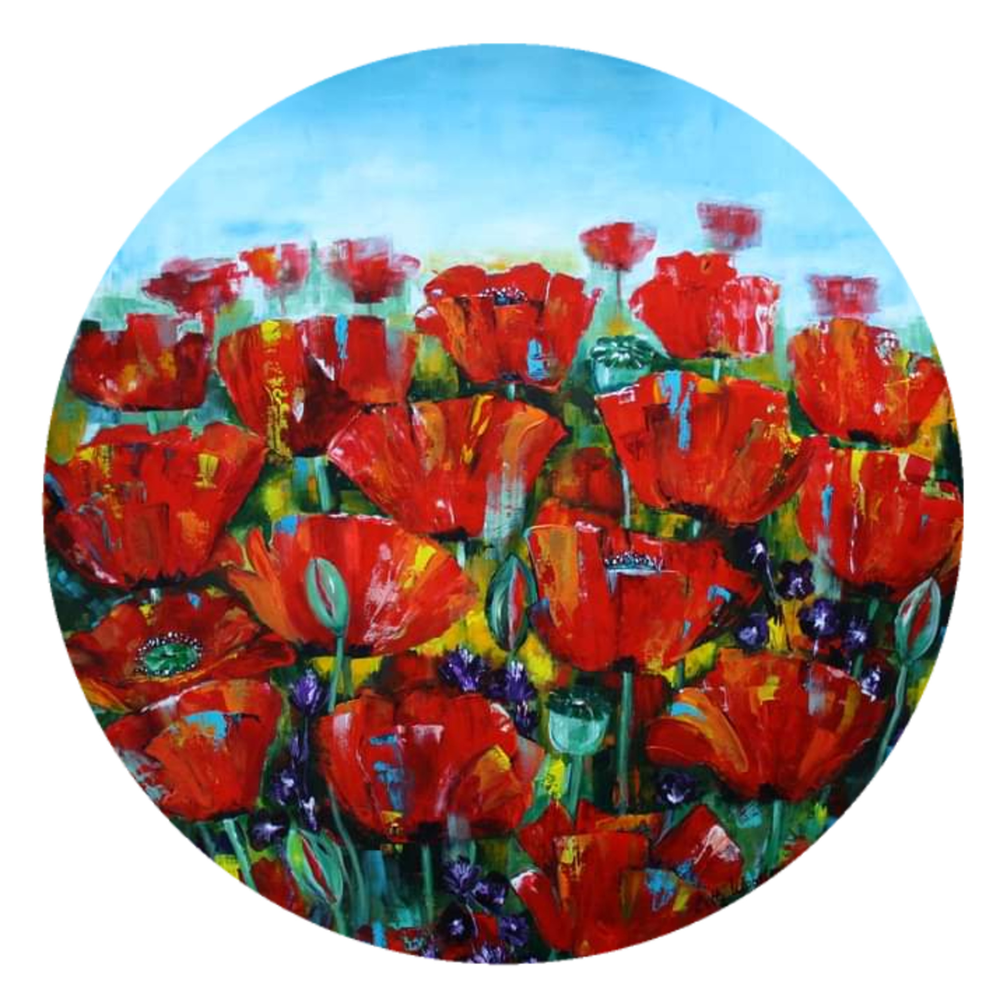Papaver Schilderij Papavers Flower Flowers Poppy Poppy''s Vrolijk Heldere Kleuren Wallart Kunst Aan De Muur Interieur Rood Acryl Painting Acryllic Rond Round Artwork Art