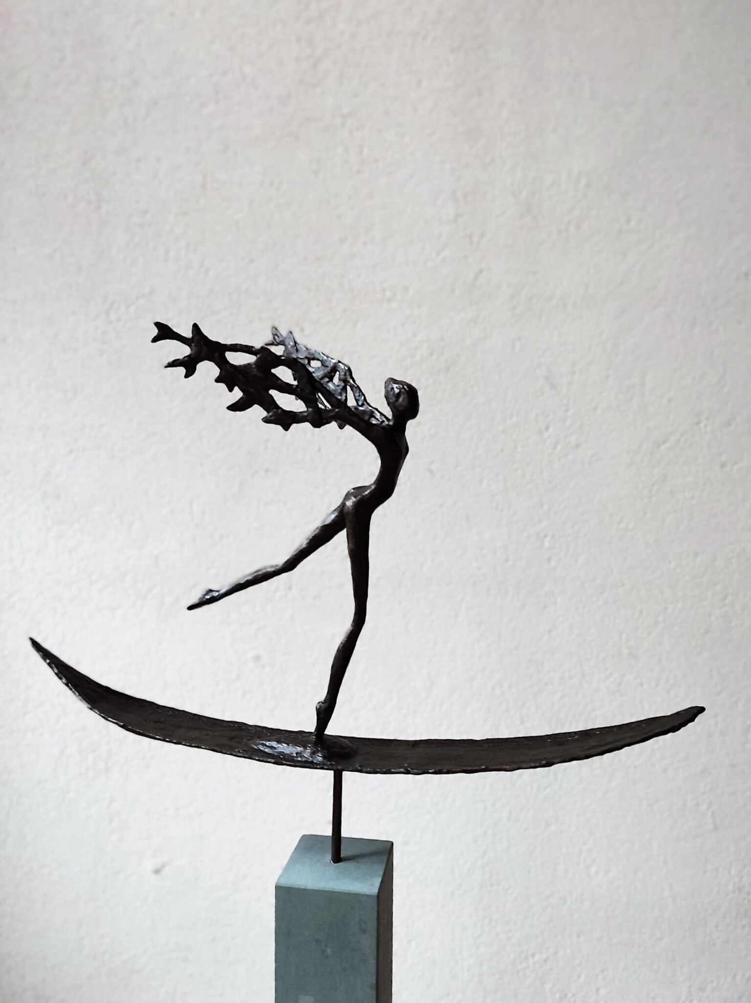 Bronzen beeld unicum. Vrouw boot vleugels op sokkel 8-8-73 cm Naar gedicht Ithaka, reis van je leven. Verkocht