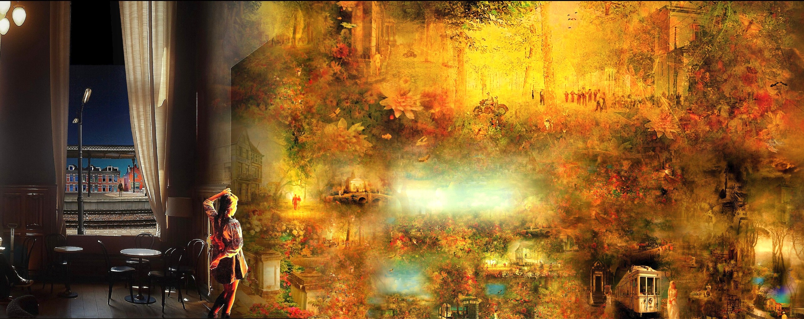Het zijn samen gestelde beelden uit een soms ver verleden. Beelden met weemoed en heimwee ,een wereld die aant vervagen is Alleen de verstilde momenten blijven nog over. Erik Gort 1953