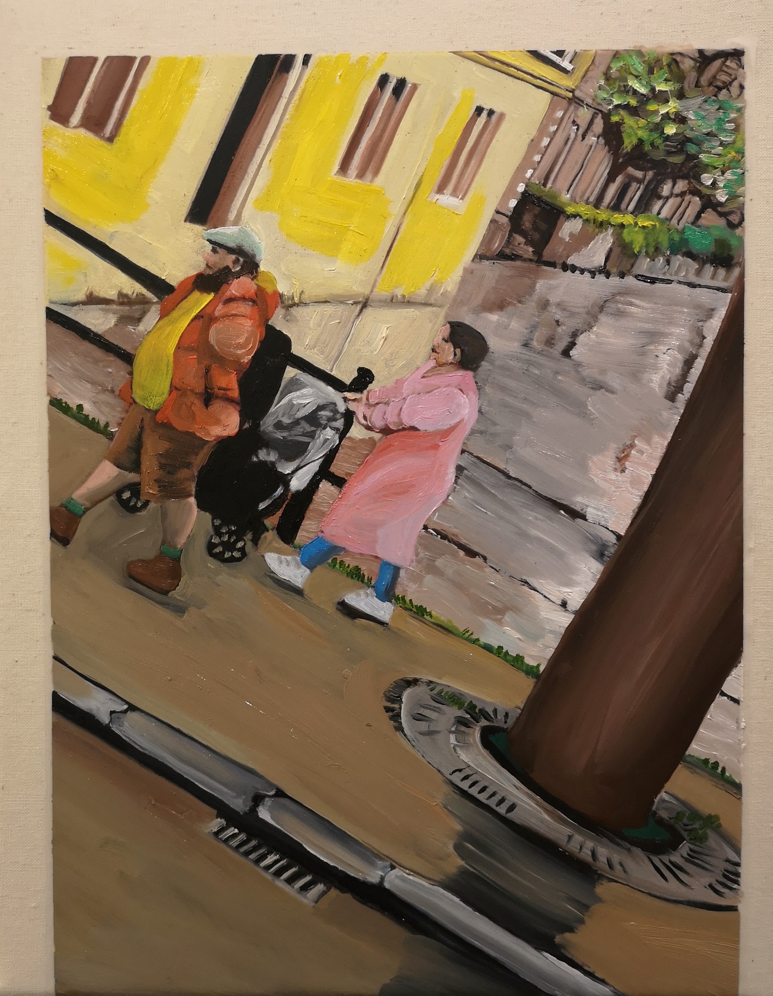 Schilderij Olieverf Wandelen Hofvijver Wandelwagen