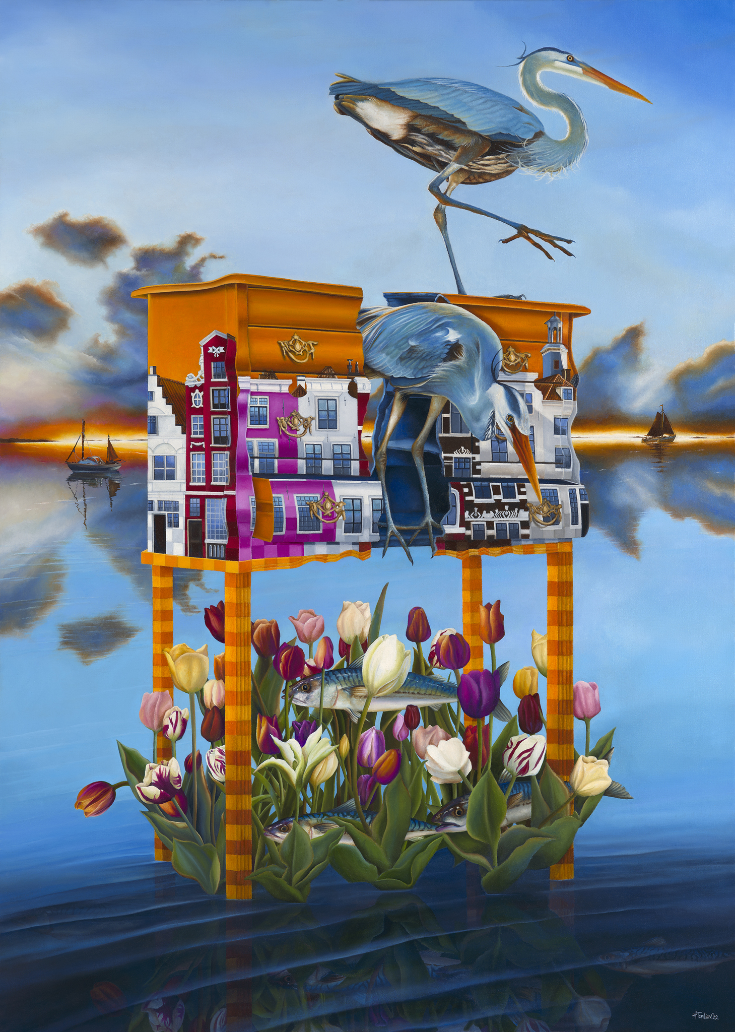 Zee Landschap Tulpen Bloemen Water Landscape Flowers Architectuur Architecture Reiger Kast Grachtenpanden Sea Tulips Kabinet Heron