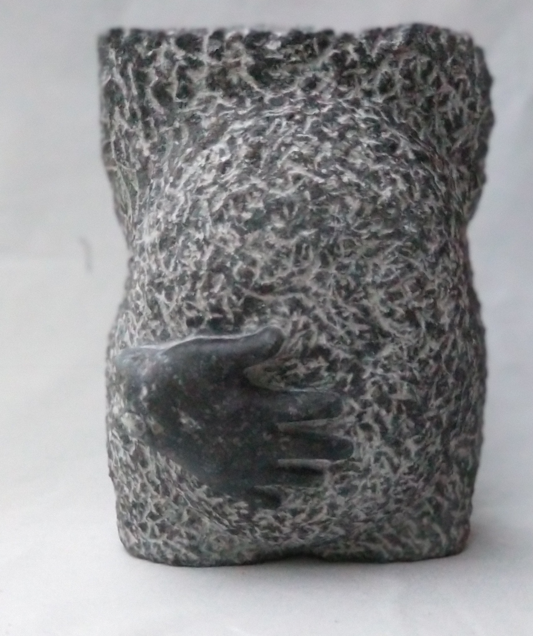 Dit is een beeld in de serie moeder en kind. Harde steen, en door de gekozen afwerking (niet heel glad, de ruwe vorm laten zien zodat de hand goed uit komt) kan er niet veel machinaal gedaan worden- en dat was precies de bedoeling.