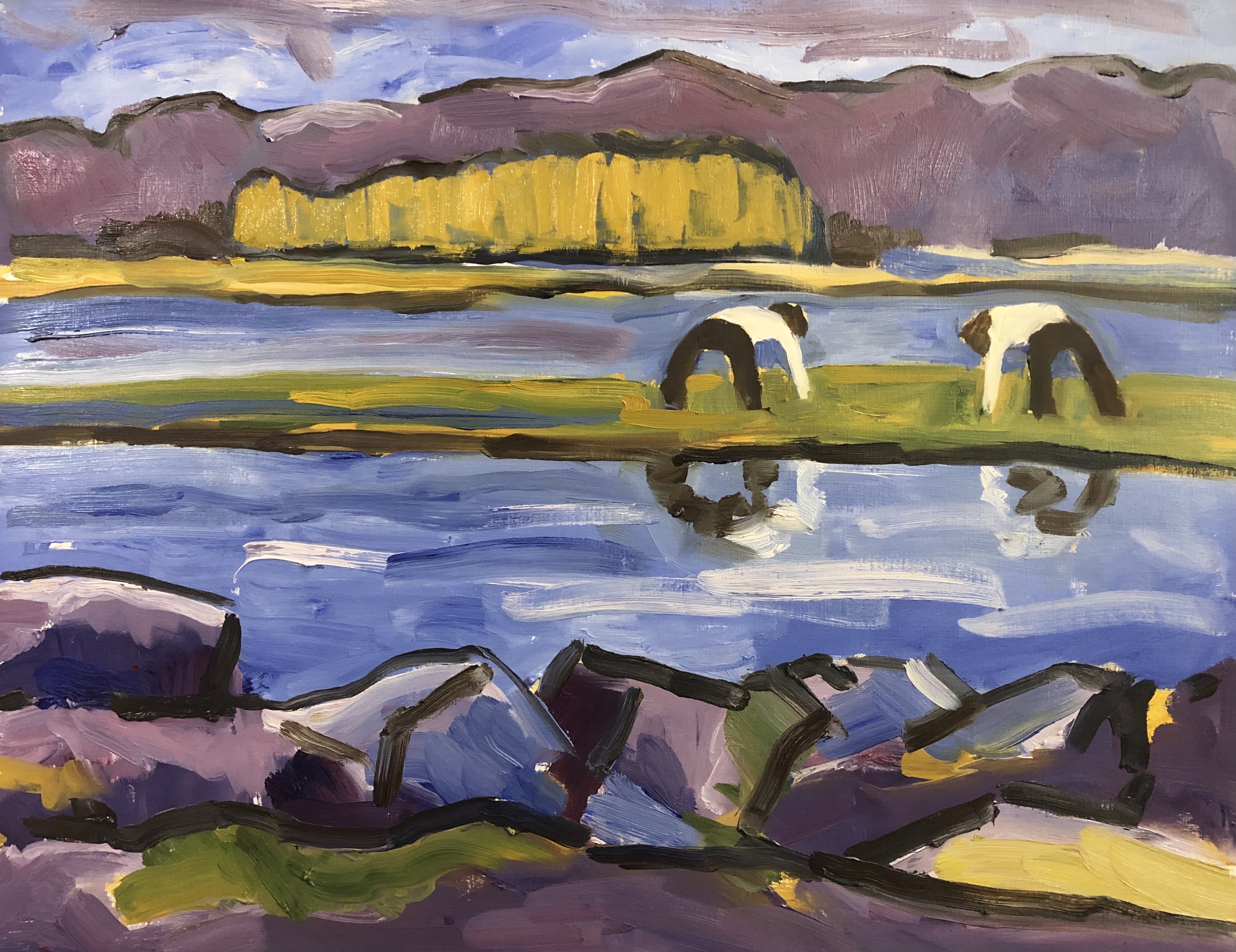 Ik schilder graag mensen in allerlei situaties, binnen of buiten. Een landschap of interieur zonder mensen kan mij ook inspireren.