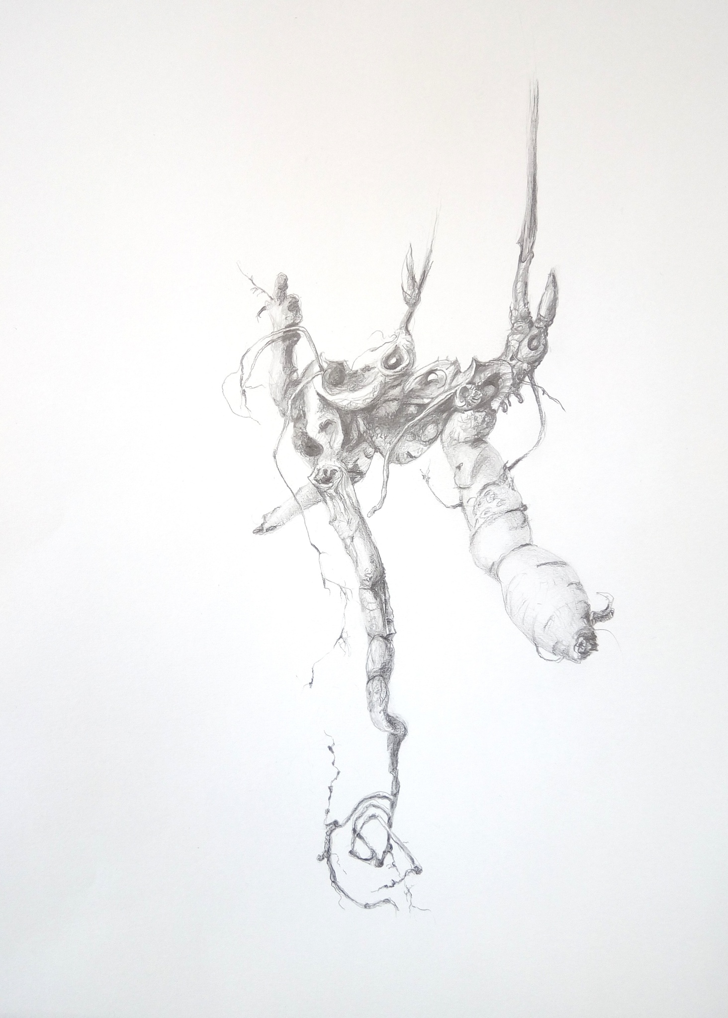 potloodtekening van pioenwortel