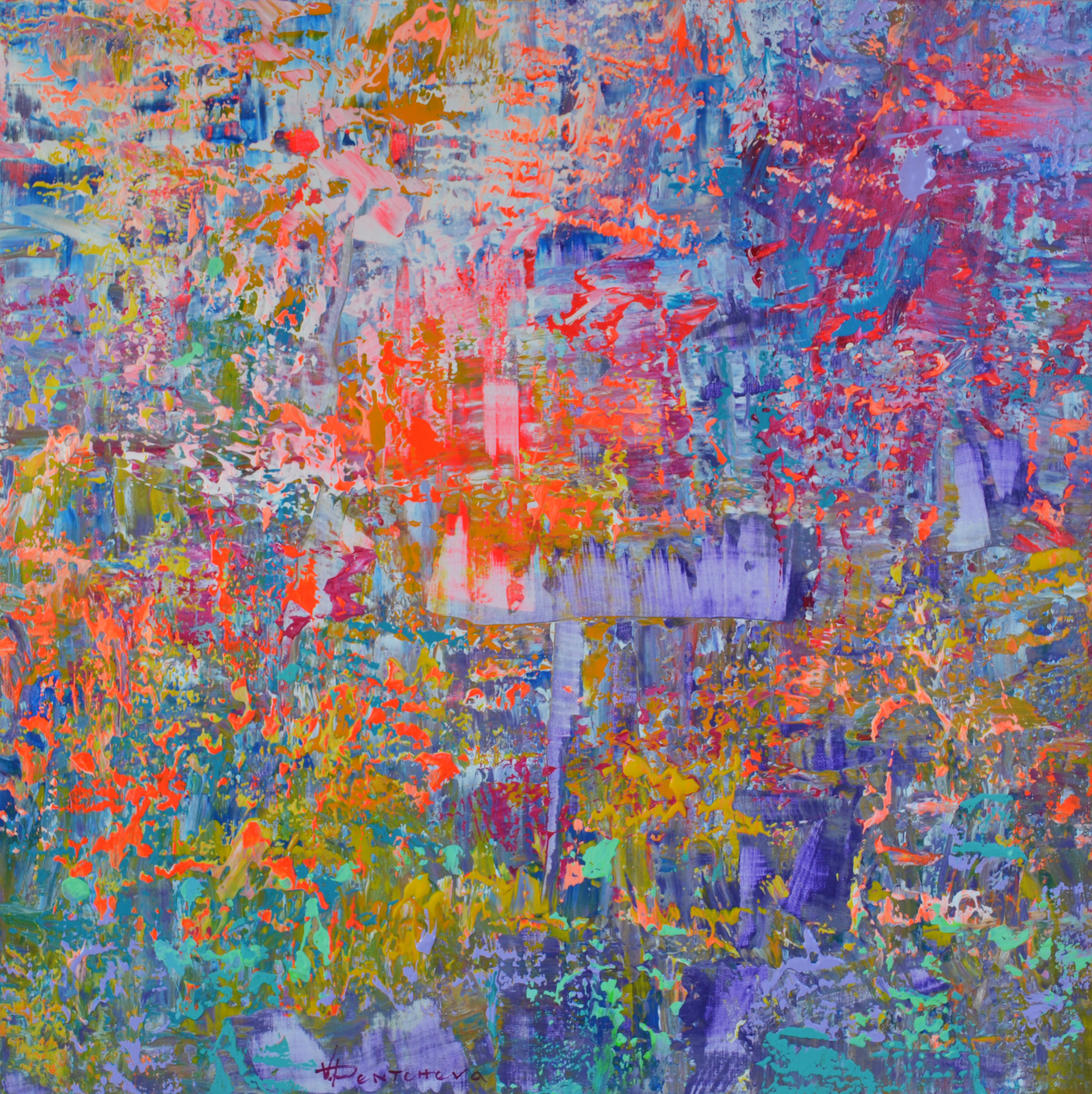 A spontaneous, textured composition of bright and glowing colours, a mix of opposites and contraries just like in life. Imagine all the opposing entities as happiness and sorrow, pleasure and pain, and enjoyment and stress are now translated into colours and set in order to create the right balance. The painting focuses on enhancing happiness and harmony and ultimately leads to more blissful living.