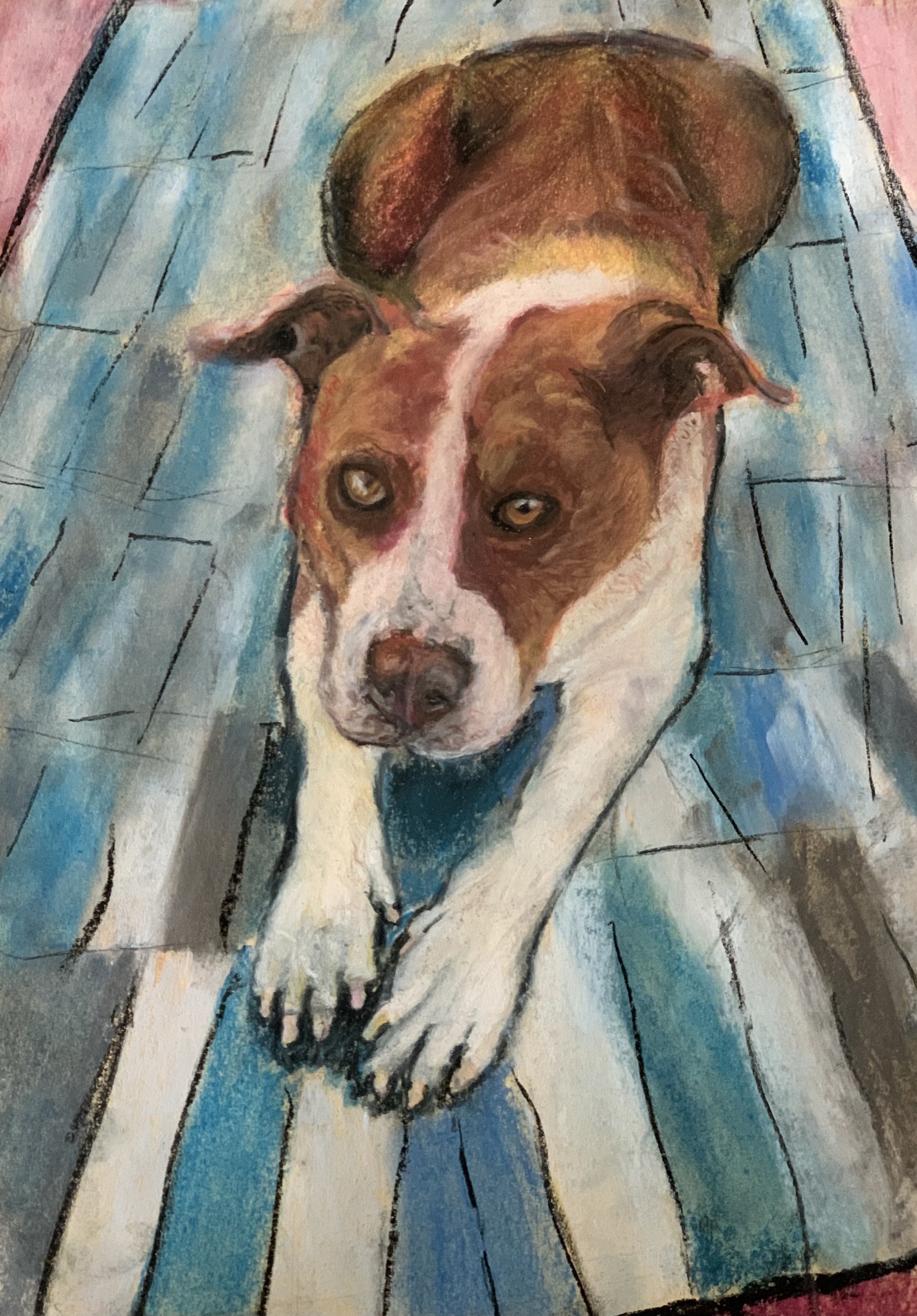 Hond met pastel, pastelkrijt american staffordshire bull terrier