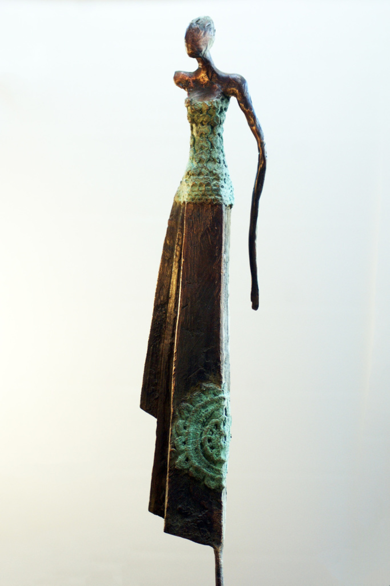 Meisje Brons Groen Vrouw Beeld Sokkel Bloem Galerie Atelier Patina Beeldhouwen Beelden Bronzen Lieve Hardstenen Beeldentuin