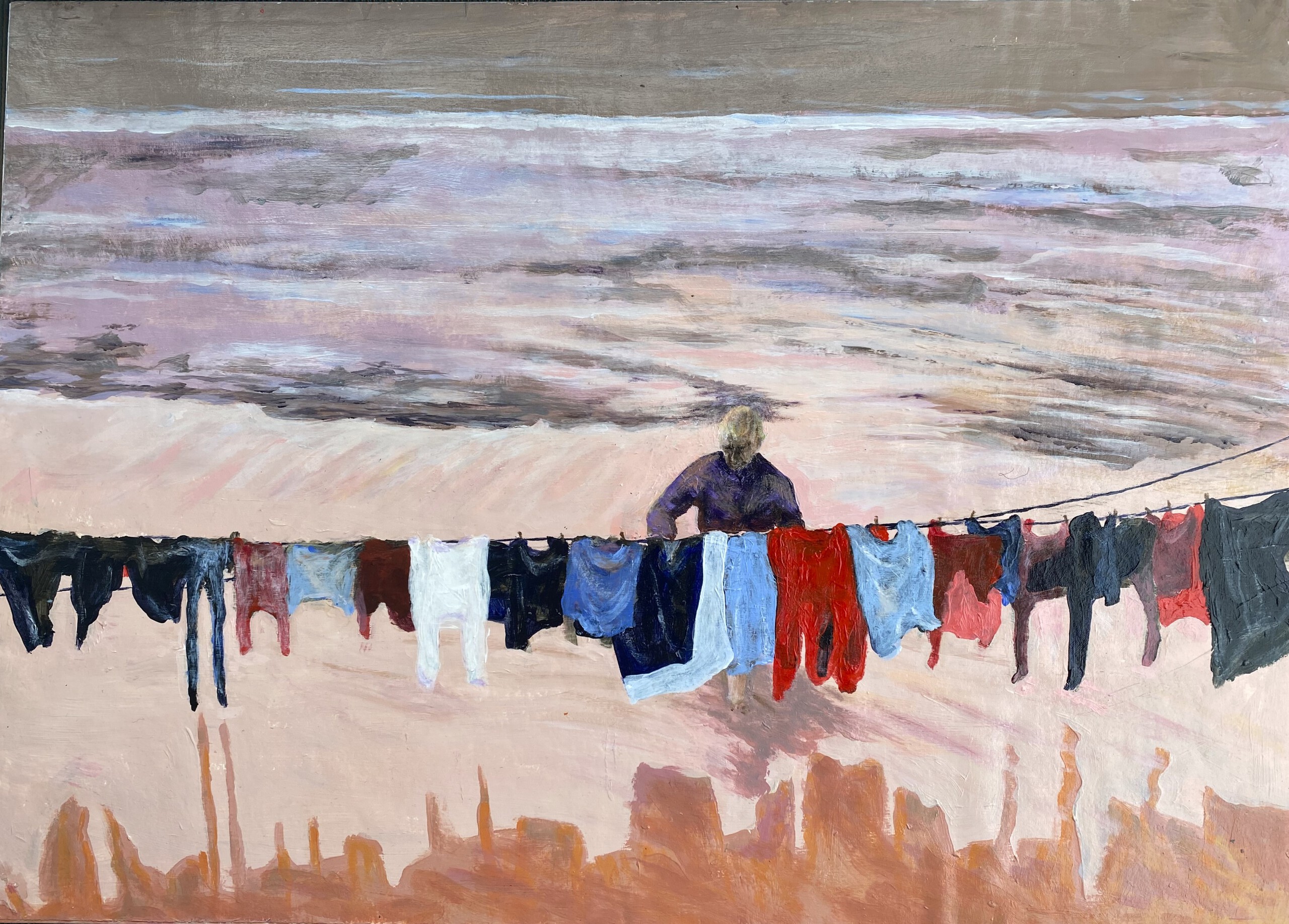 Raynold Bruessing, geboren in 1946 in Den Haag. Ik maak acrylschilderwerk op papier. Autodidact. Ik gebruik afbeeldingen op foto’s voor een verhalend resultaat met de verf.
