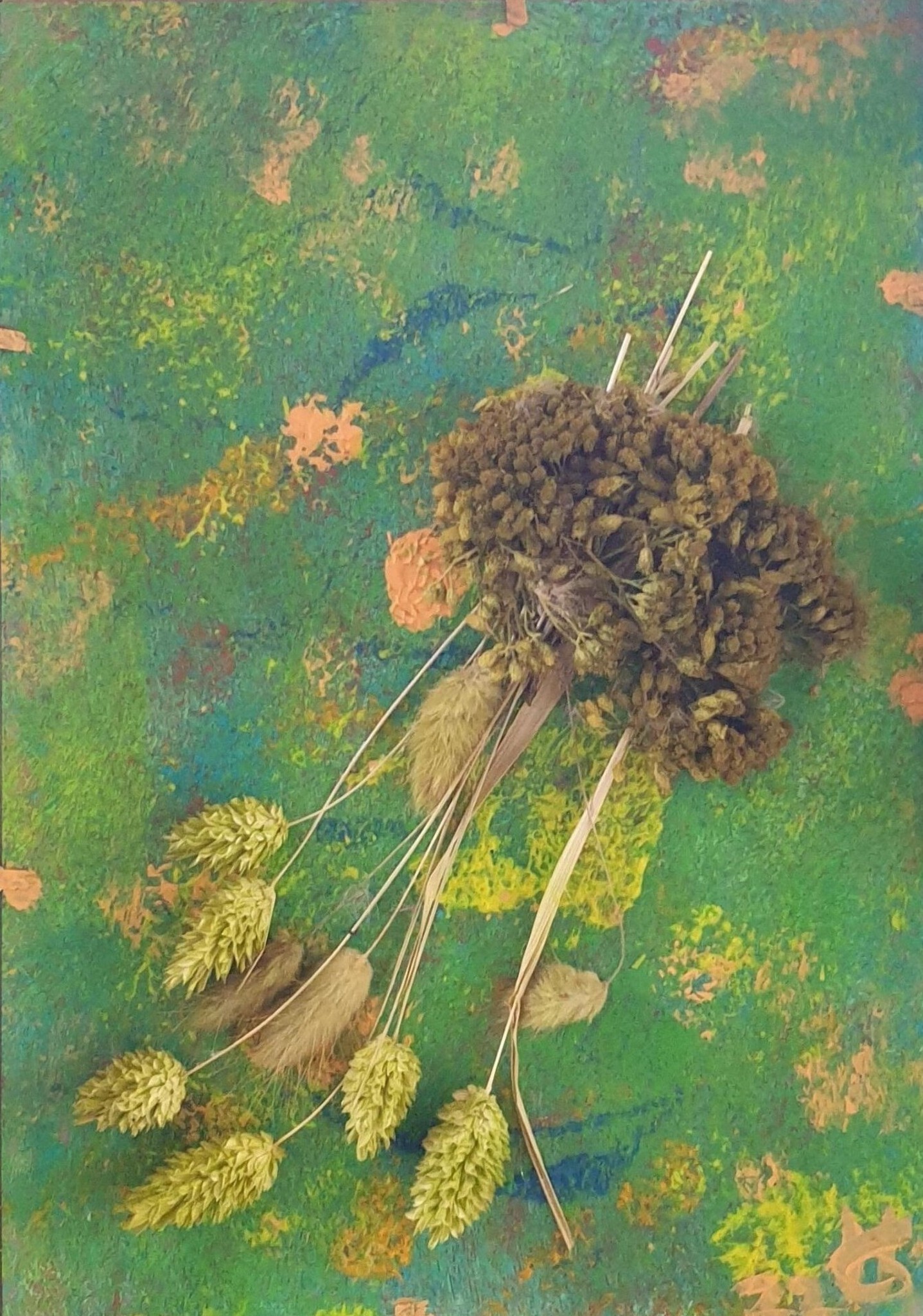 Geel Groen Bloemen Mixed Media Van Acrylverf Met Lijst Kleur Materiaal Recycle Hetty Gool