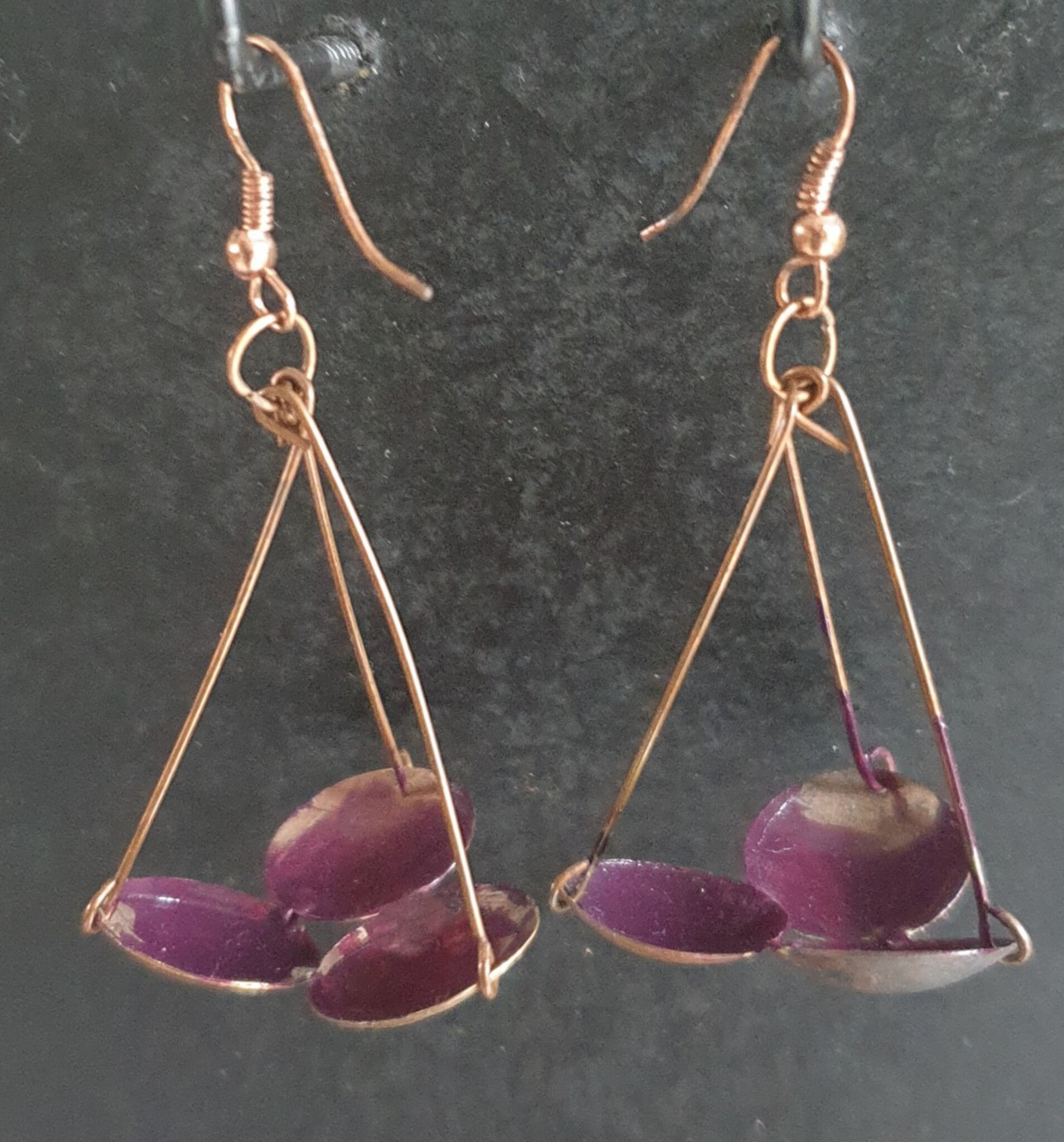 Oorbel Koper Recycle Materiaal Oorhangers Paars Oorsieraad Hetty Van Gool Uniek Artistiek