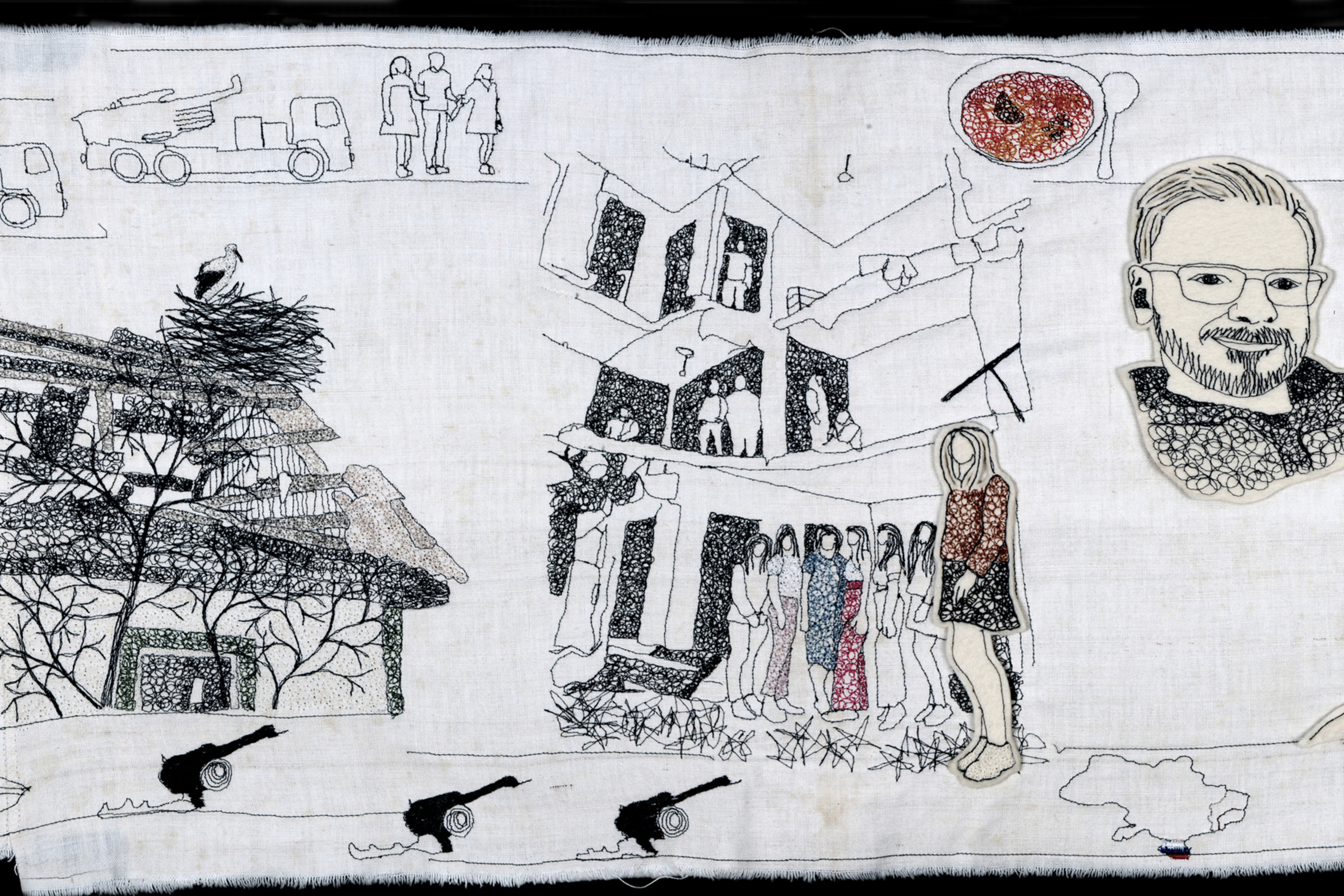 Textielkunst Realistisch Oorlogsverslag Tapis De Oekraïne