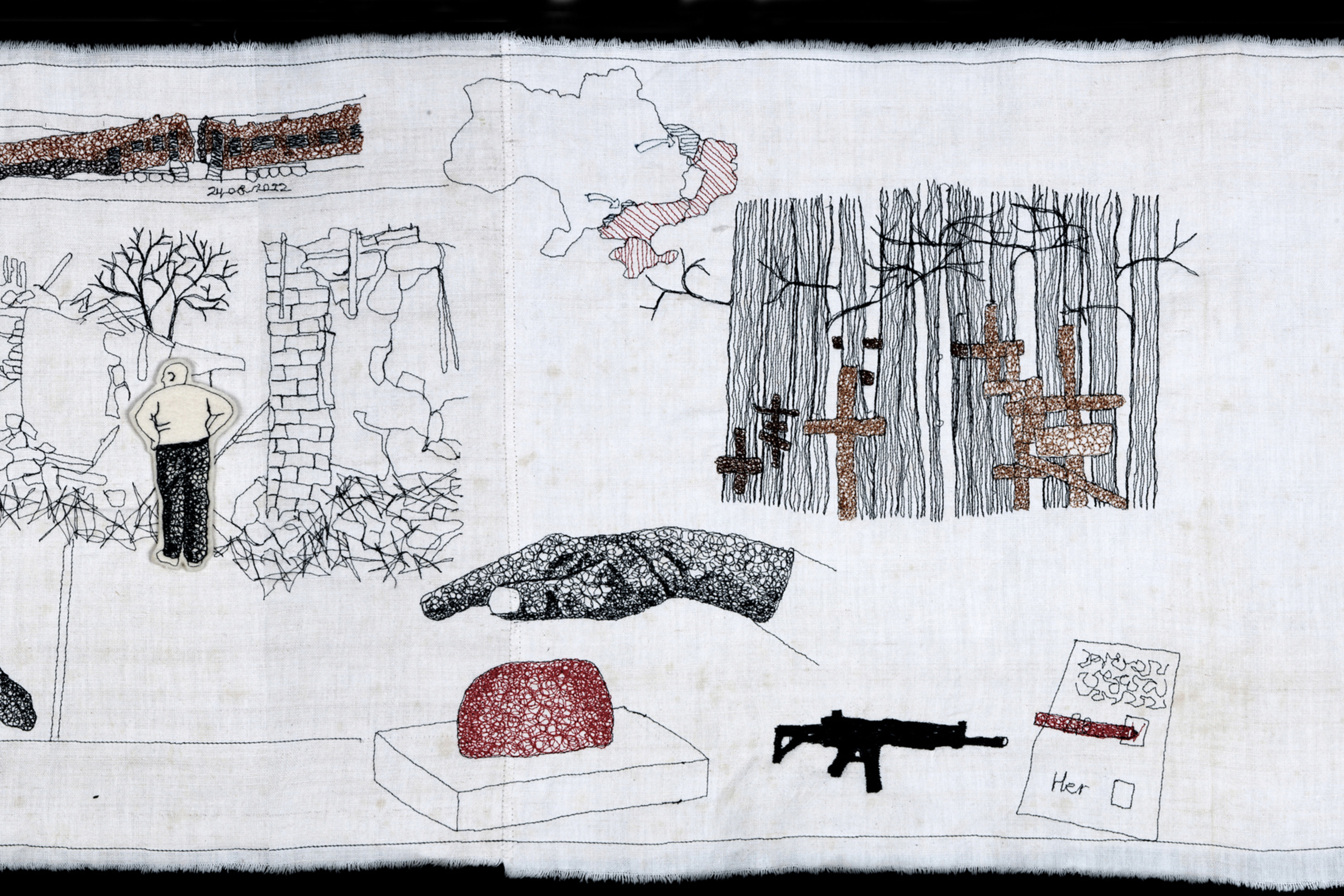 Textielkunst Realistisch Oorlogsverslag Tapis De Oekraïne