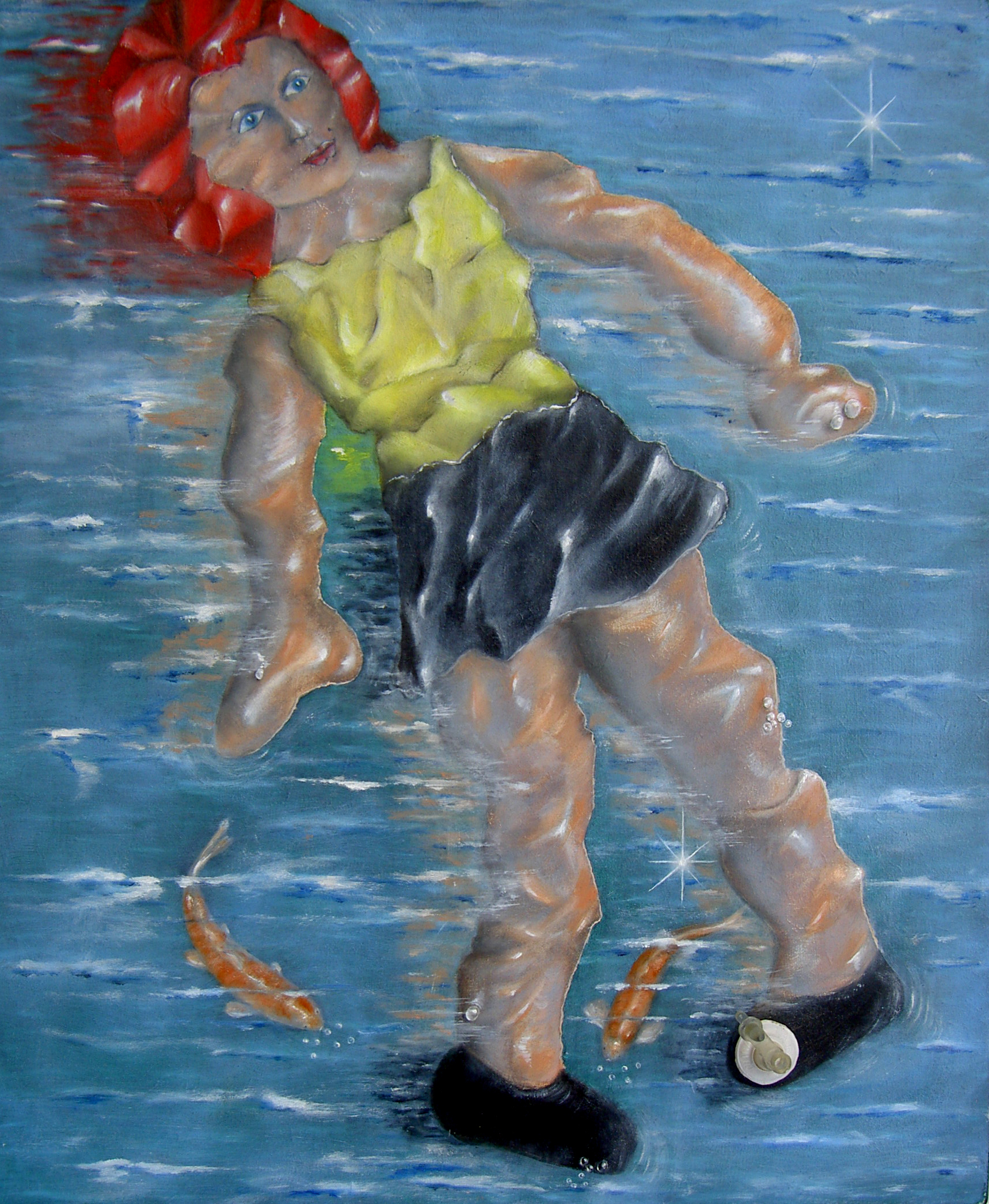 Realistisch geschilderd. Opblaasventiel aan kunstwerk toegevoegd.
