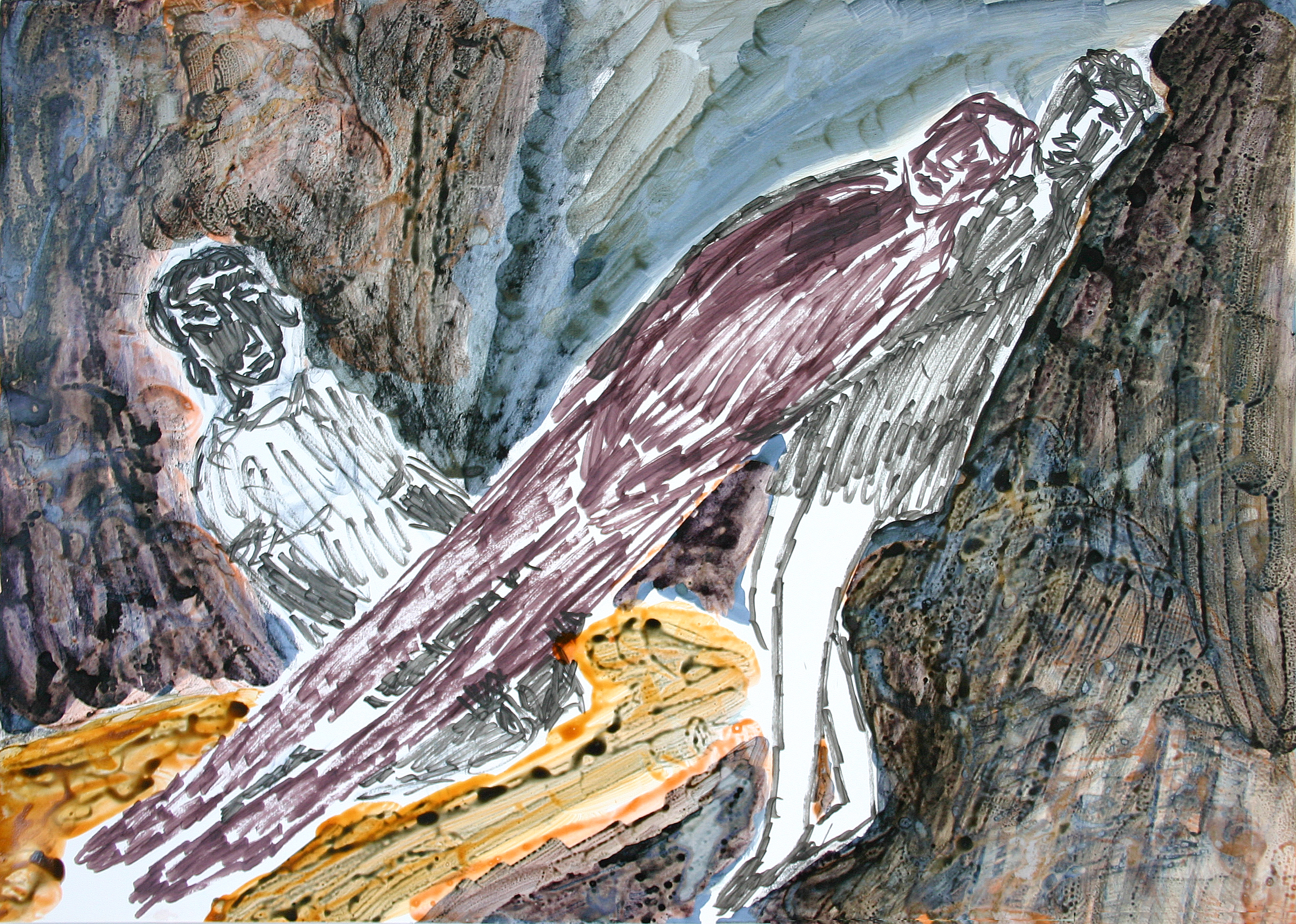 uit n serie voor exto, gebaseerd op n tekening van rembrandt (zeer gemengde techniek op papier)