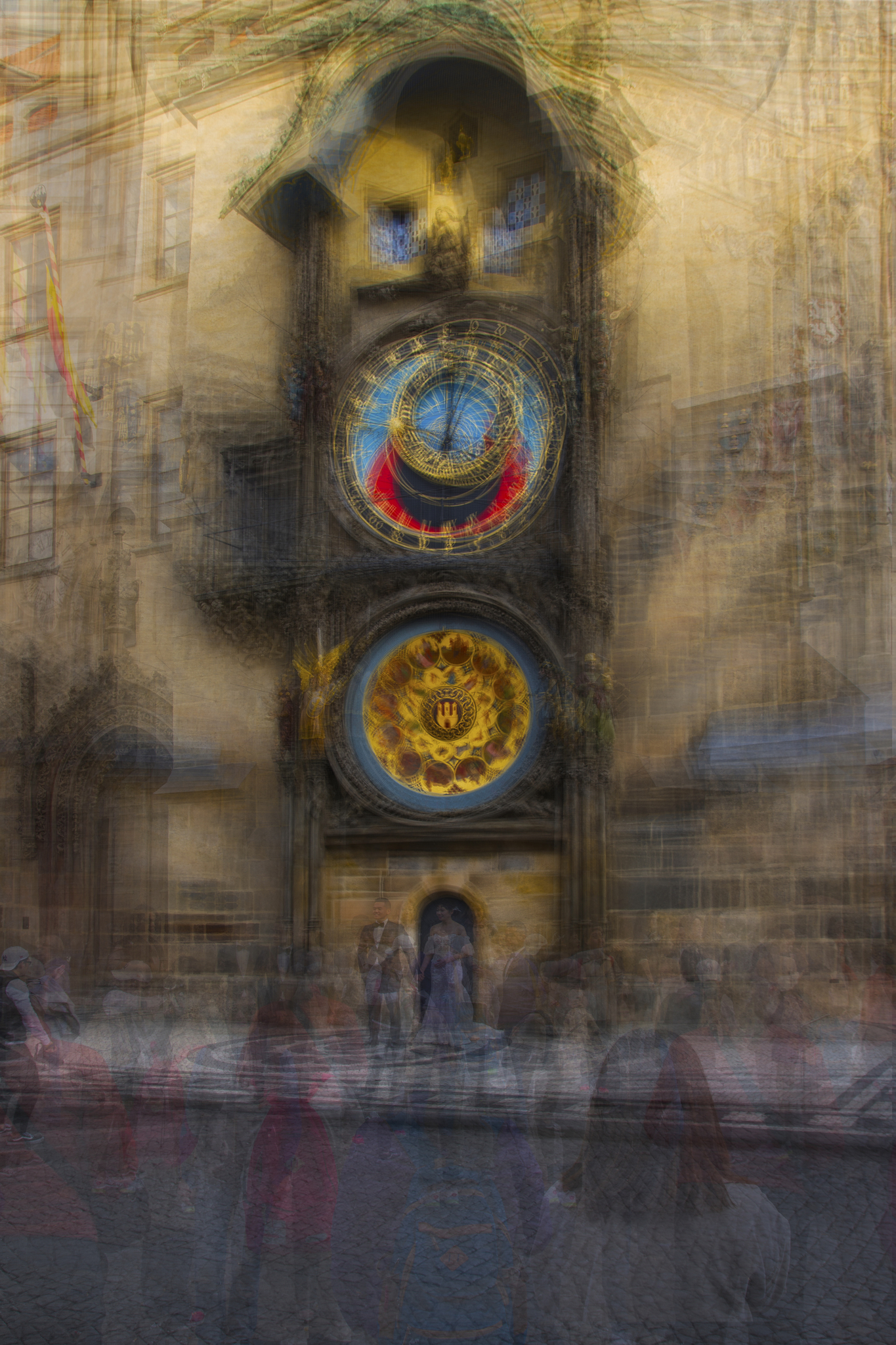 Deze foto maakte ik in de zeer vroege ochtend toen ik hoopte op een mindere mensenmassa dan overdag. Tot mijn verbazing werd er echter al volop geposeerd en gefotografeerd. De Karelsbrug en de astronomische klok waren decor voor tal van Chinese bruiloftsfoto's. De foto is bevestigd op dibond met aan de achterkant een aluminium ophangsysteem en afgedekt met acrylglas. Kan zó aan de muur!