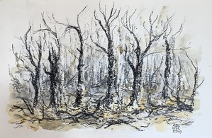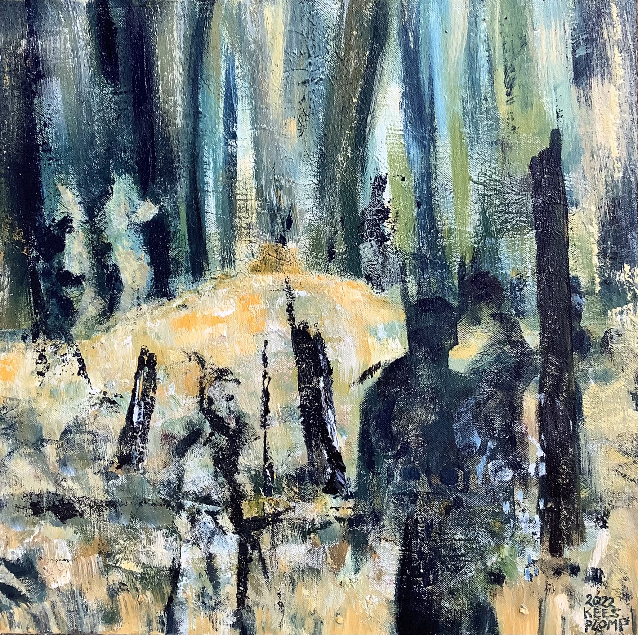 Kees Plomp, Oud-Beijerland, 1949. Beeldend kunstenaar, schilderen, aquarelleren en tekenen. Na de middelbare school ging ik naar de Rotterdamse kunstacademie. Wanneer een onderwerp mij boeit levert dit meestal een reeks werkstukken op in verschillende materialen en van diverse afmetingen. In het proces van eerste schets naar schilderij wordt de natuurgetrouwe weergave minder belangrijk. In de loop van de jaren heb ik meerdere thema's zo uitgewerkt. Voor het meest recente werk zijn tijdens reizen gemaakte schetsen vaak het uitgangspunt geweest. Verder is mijn belangstelling voor het sjamanisme een inspiratie.