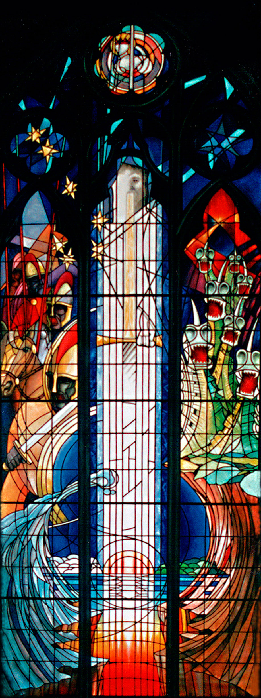 Een op canvas geschilderd 'karton' voor een gebrandschilderd glasraam. Op ware grootte . 4.00 m x 2.00 m